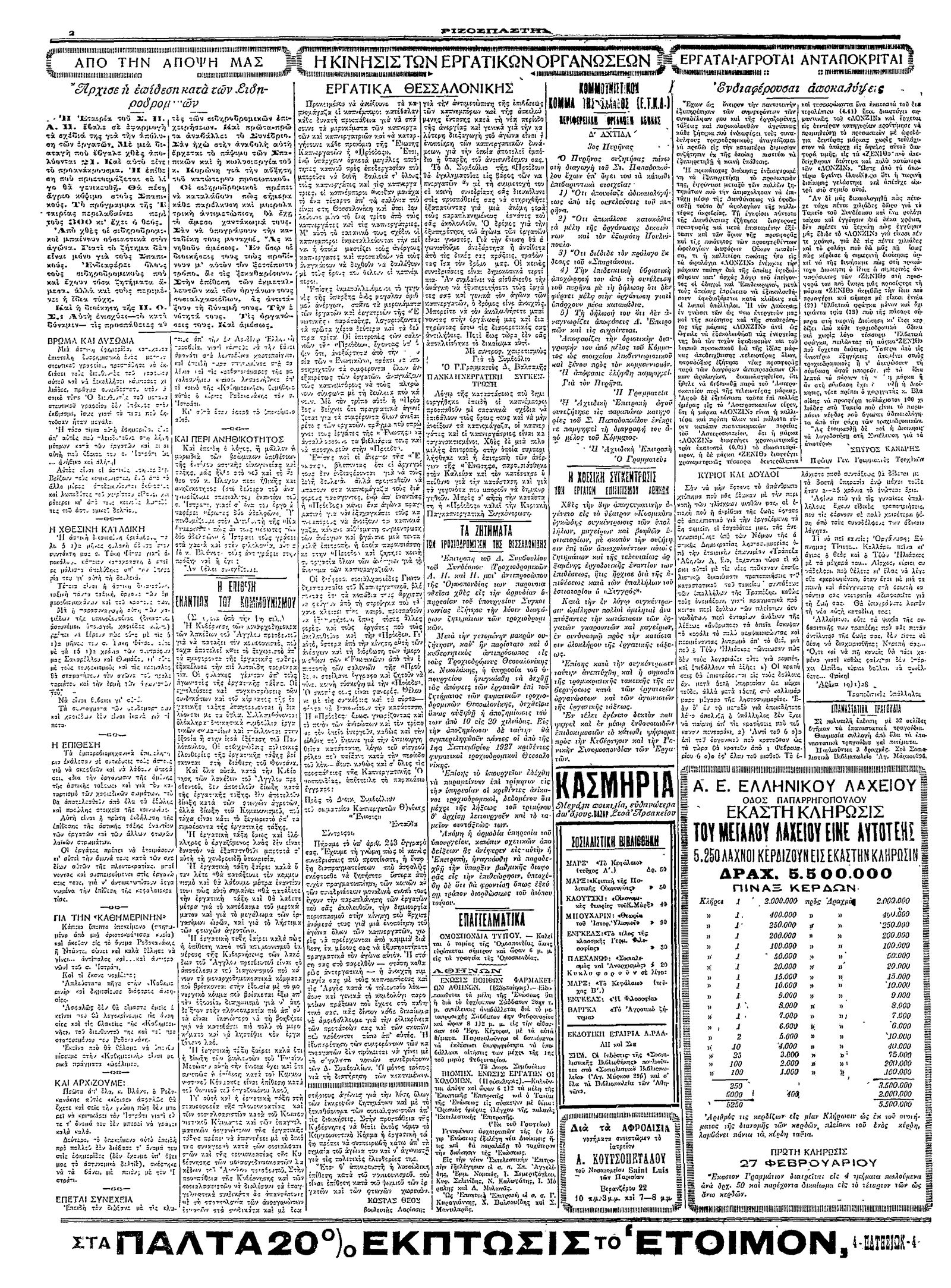 Ριζοσπάστης 27/01/1928