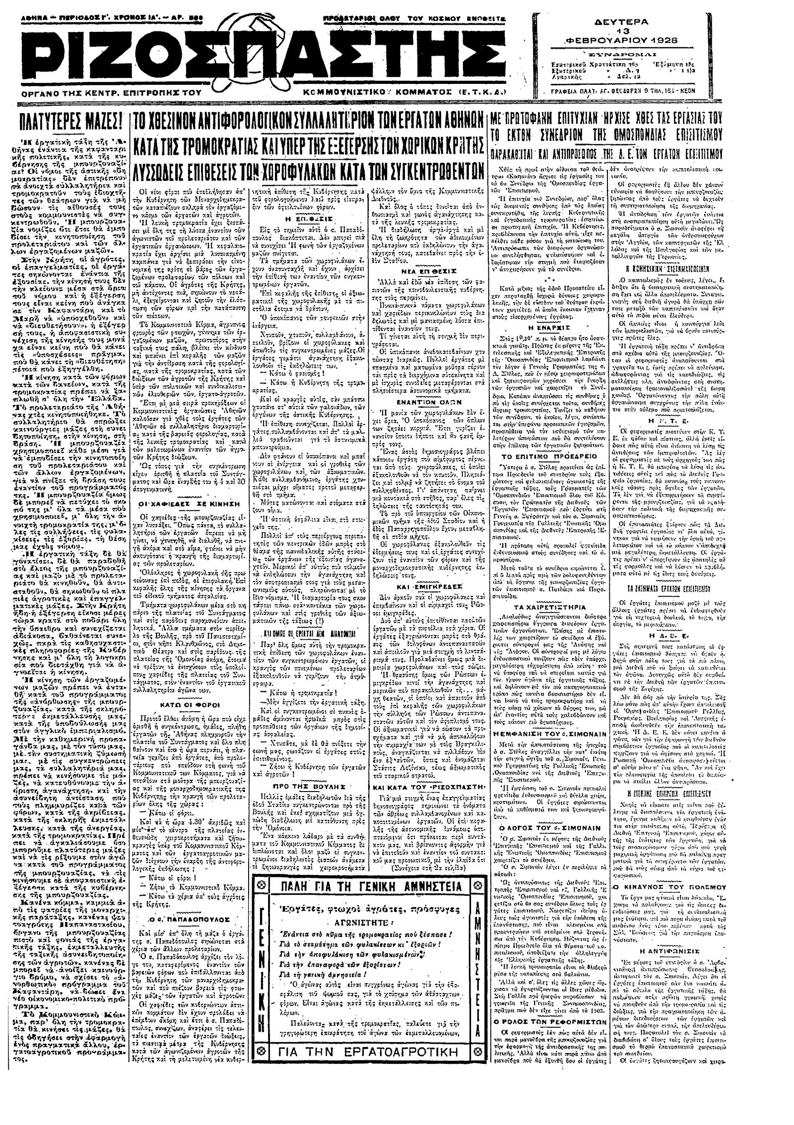 Ριζοσπάστης 13/02/1928