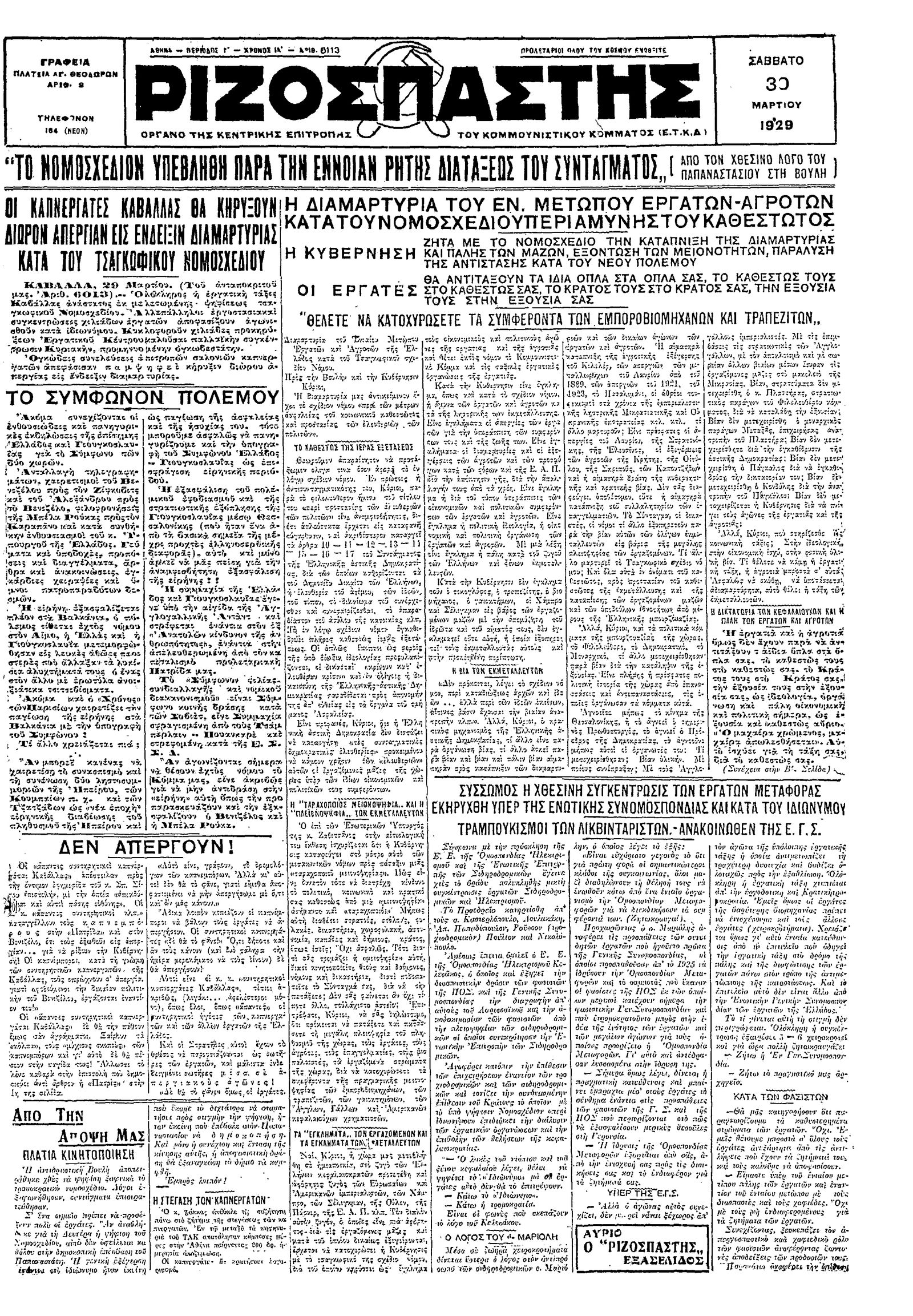 Ριζοσπάστης 30/03/1929