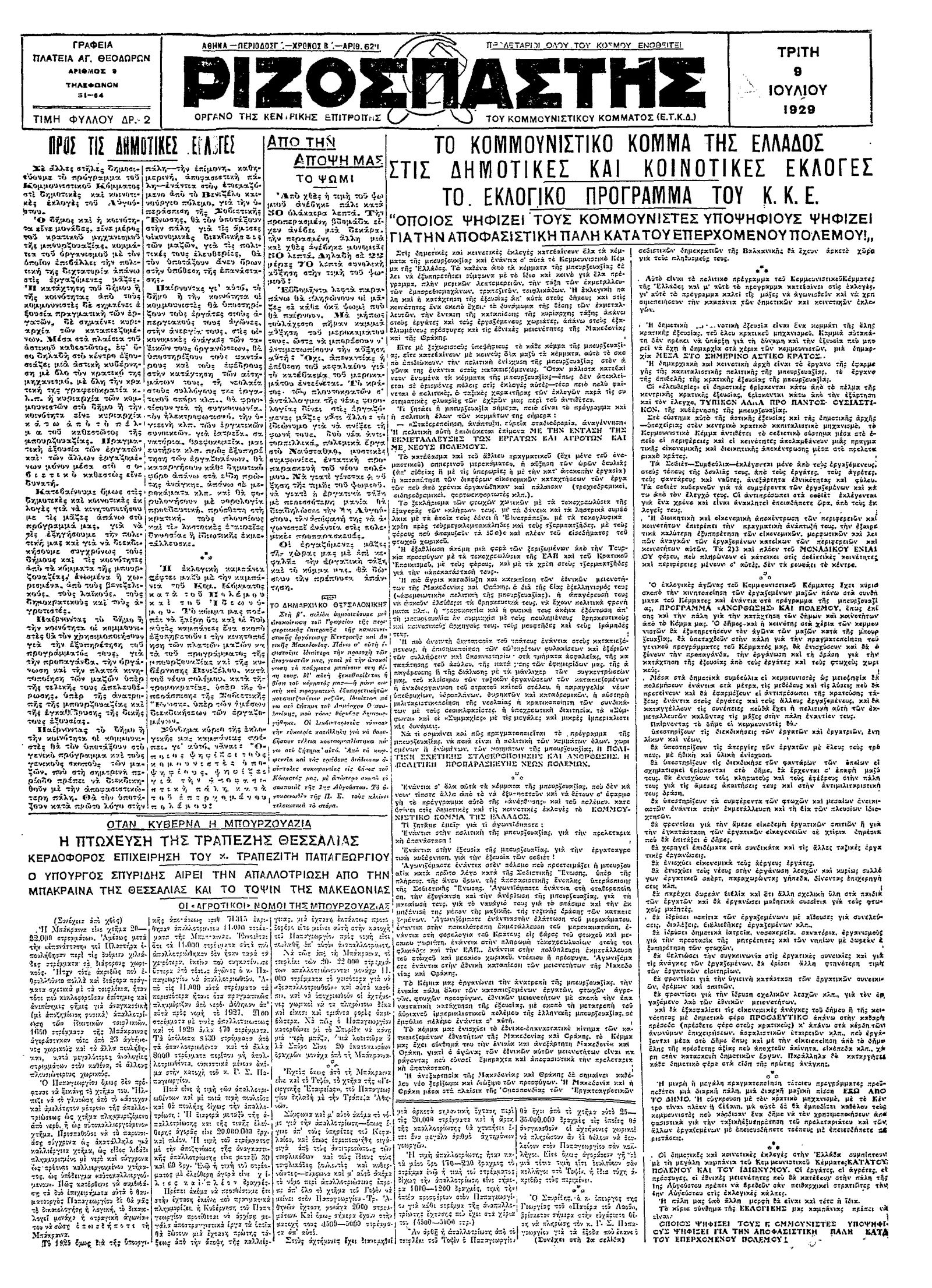 Ριζοσπάστης 09/07/1929