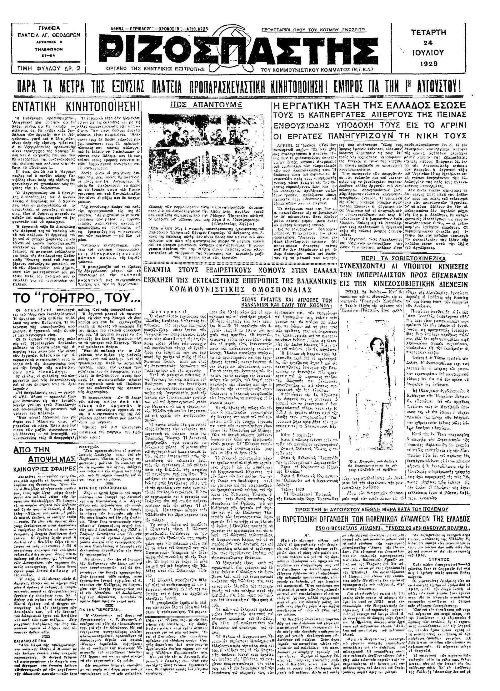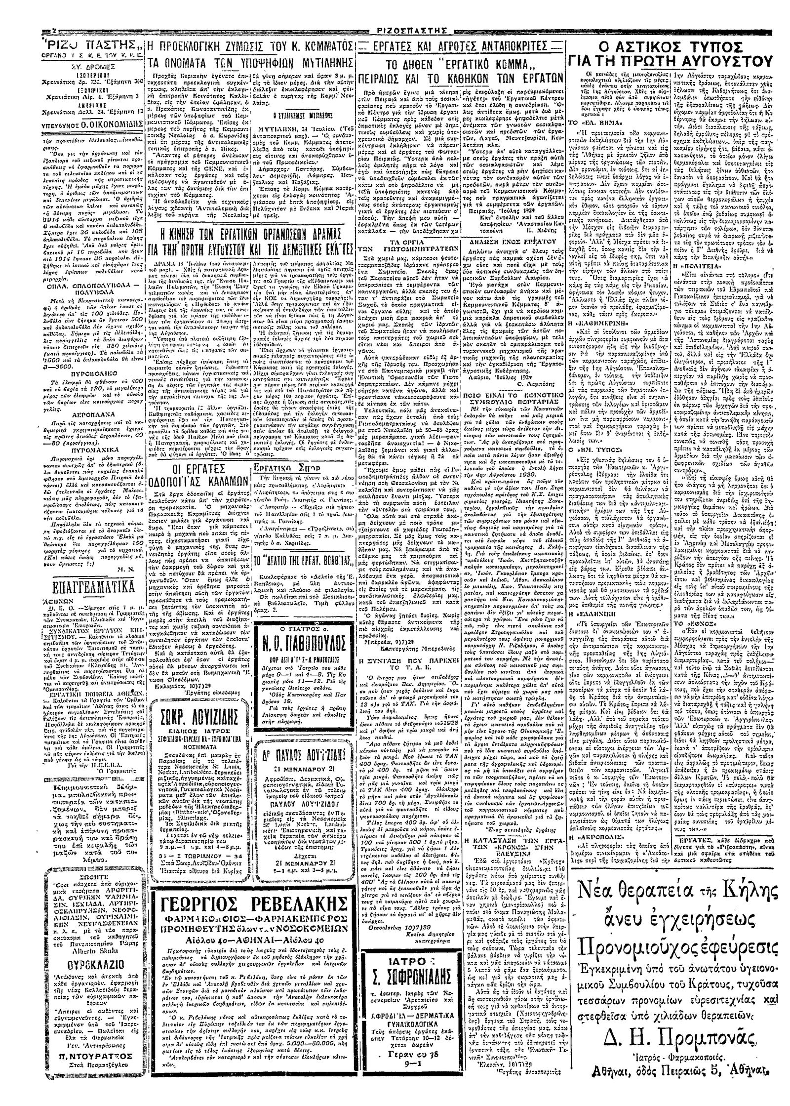 Ριζοσπάστης 24/07/1929