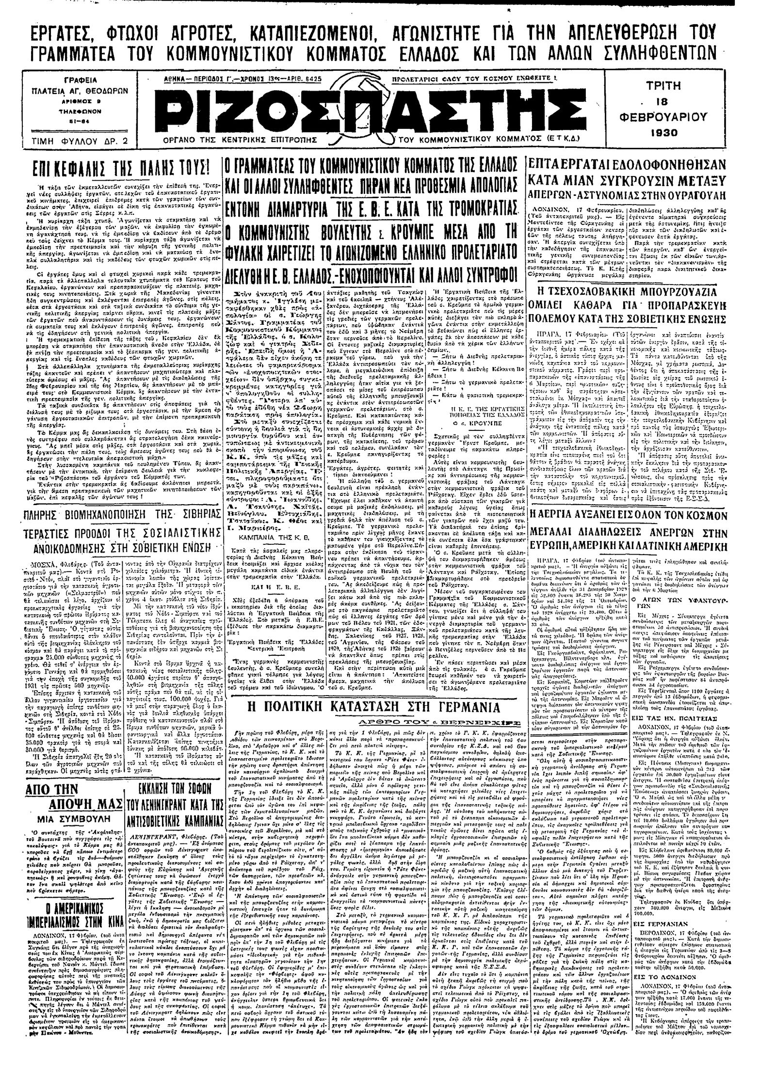 Ριζοσπάστης 18/02/1930