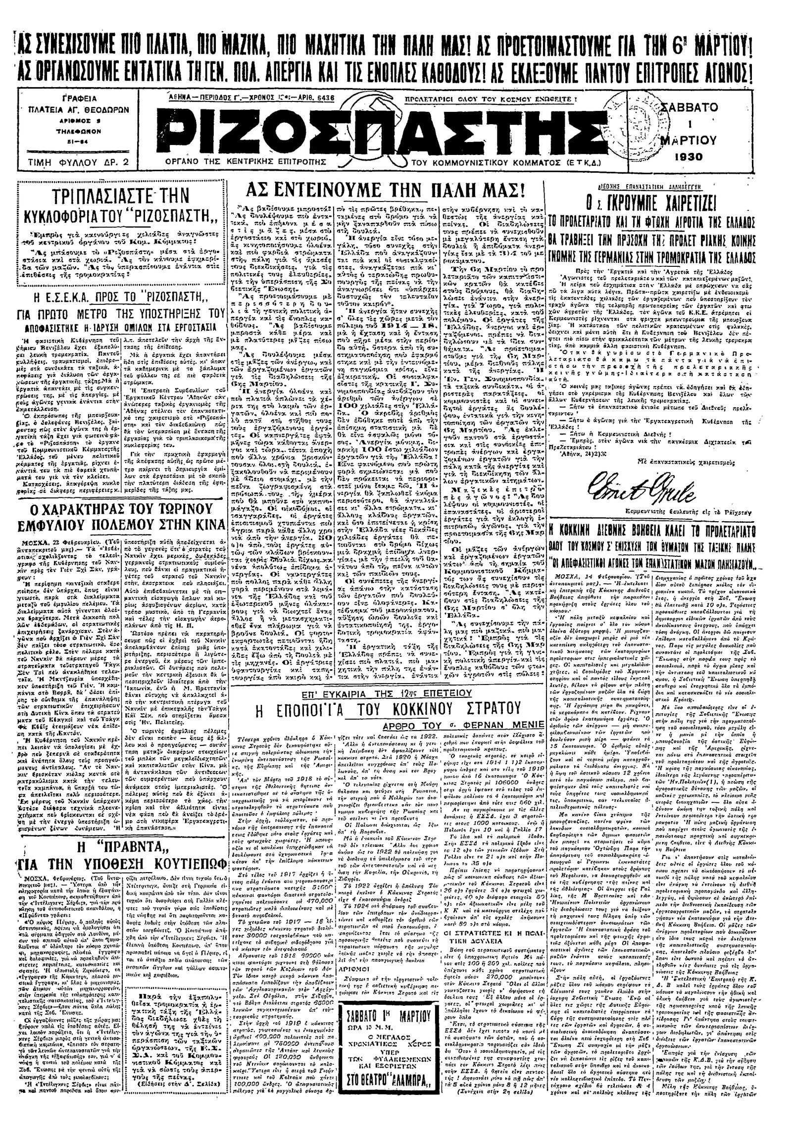 Ριζοσπάστης 01/03/1930