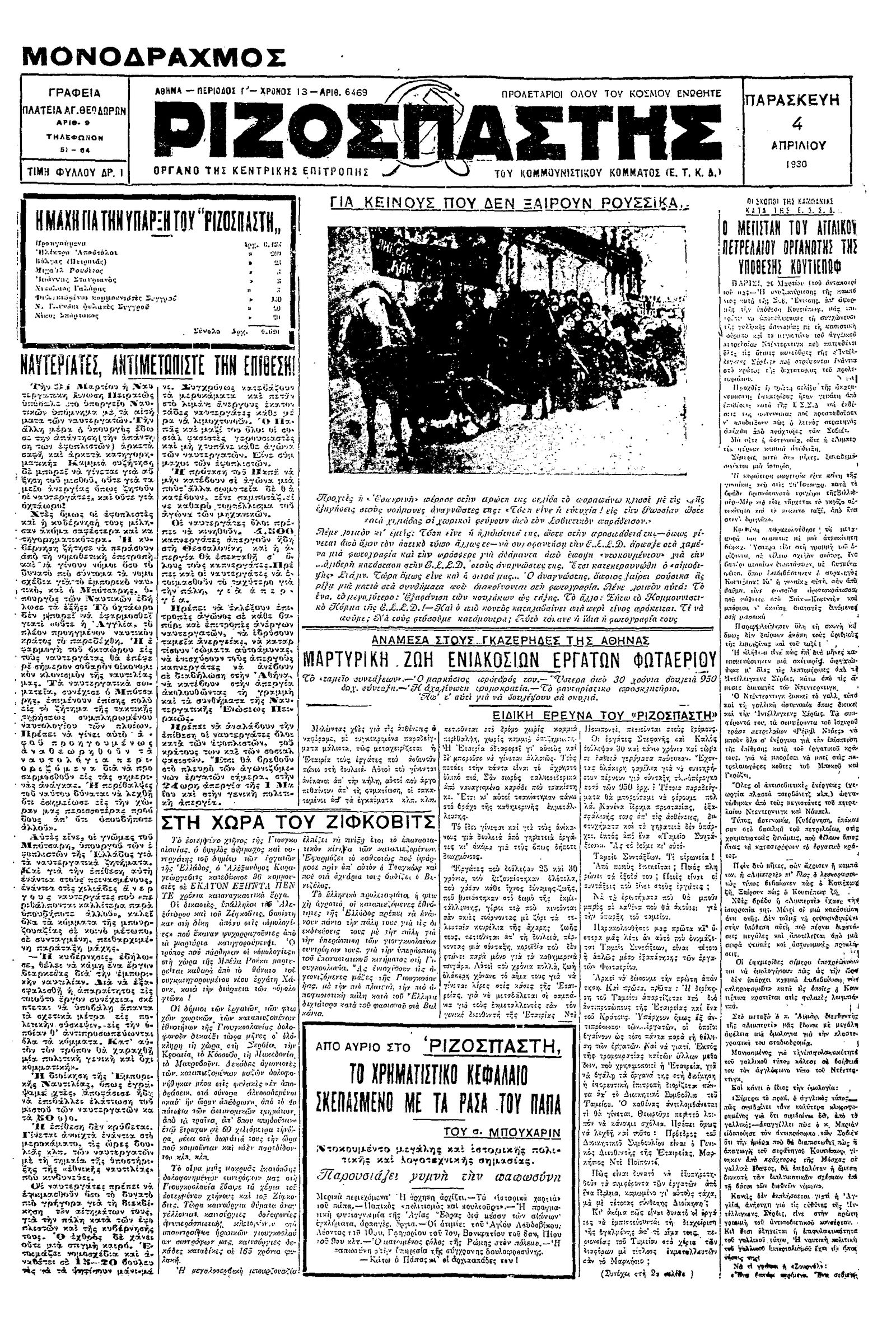 Ριζοσπάστης 04/04/1930