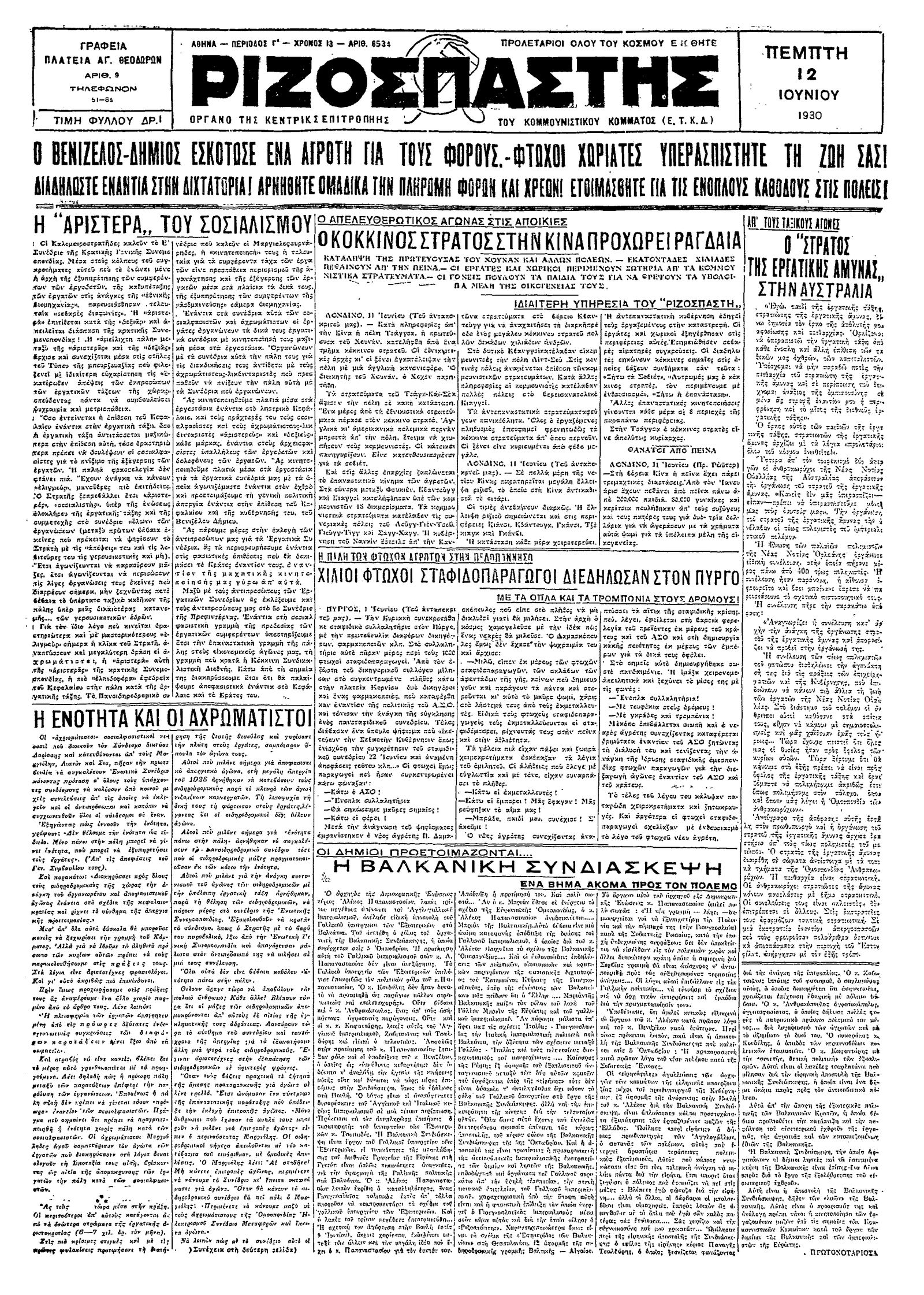 Ριζοσπάστης 12/06/1930