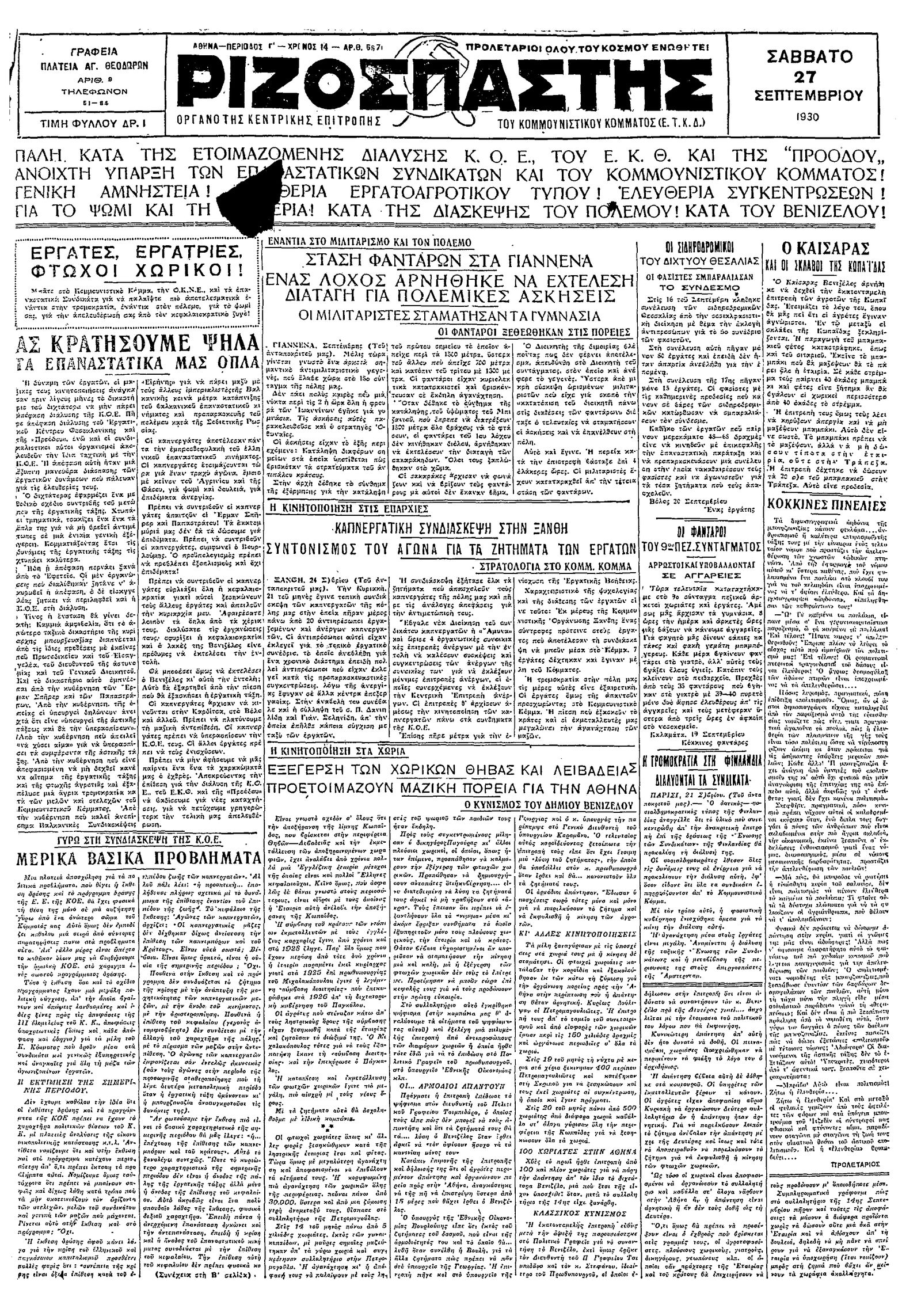 Ριζοσπάστης 27/09/1930