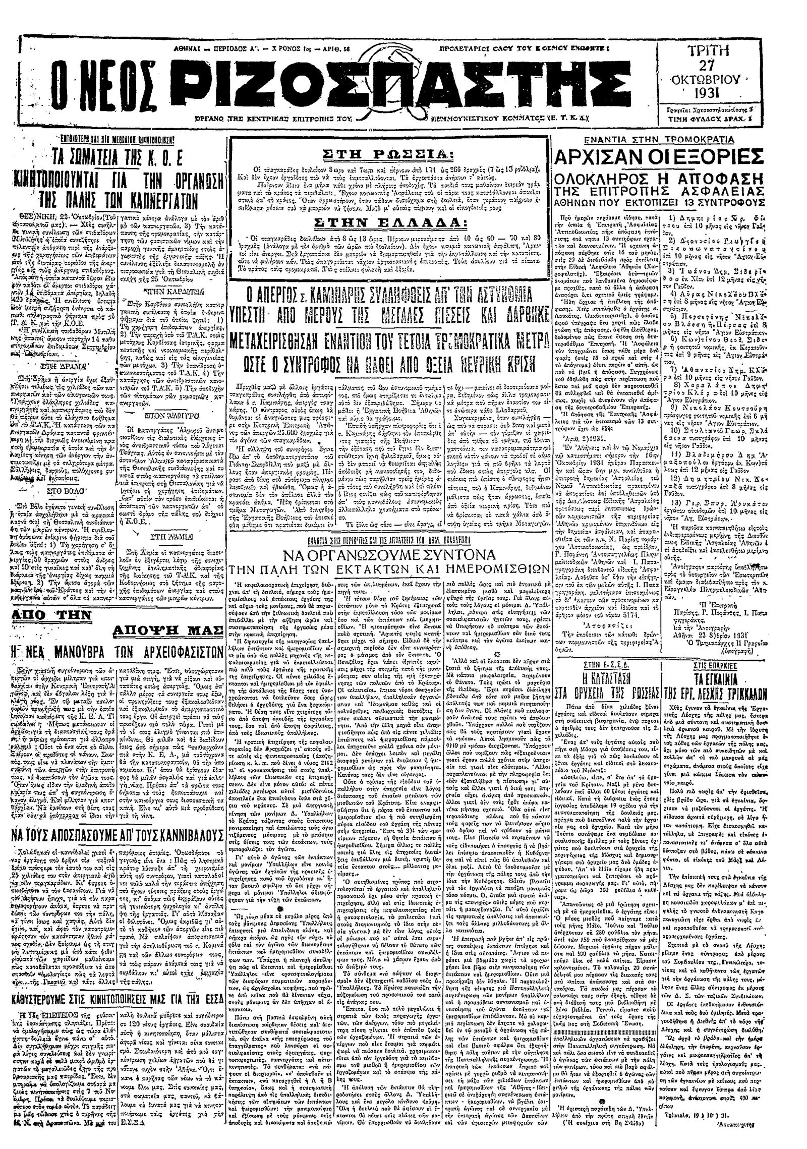 Ριζοσπάστης 27/10/1931