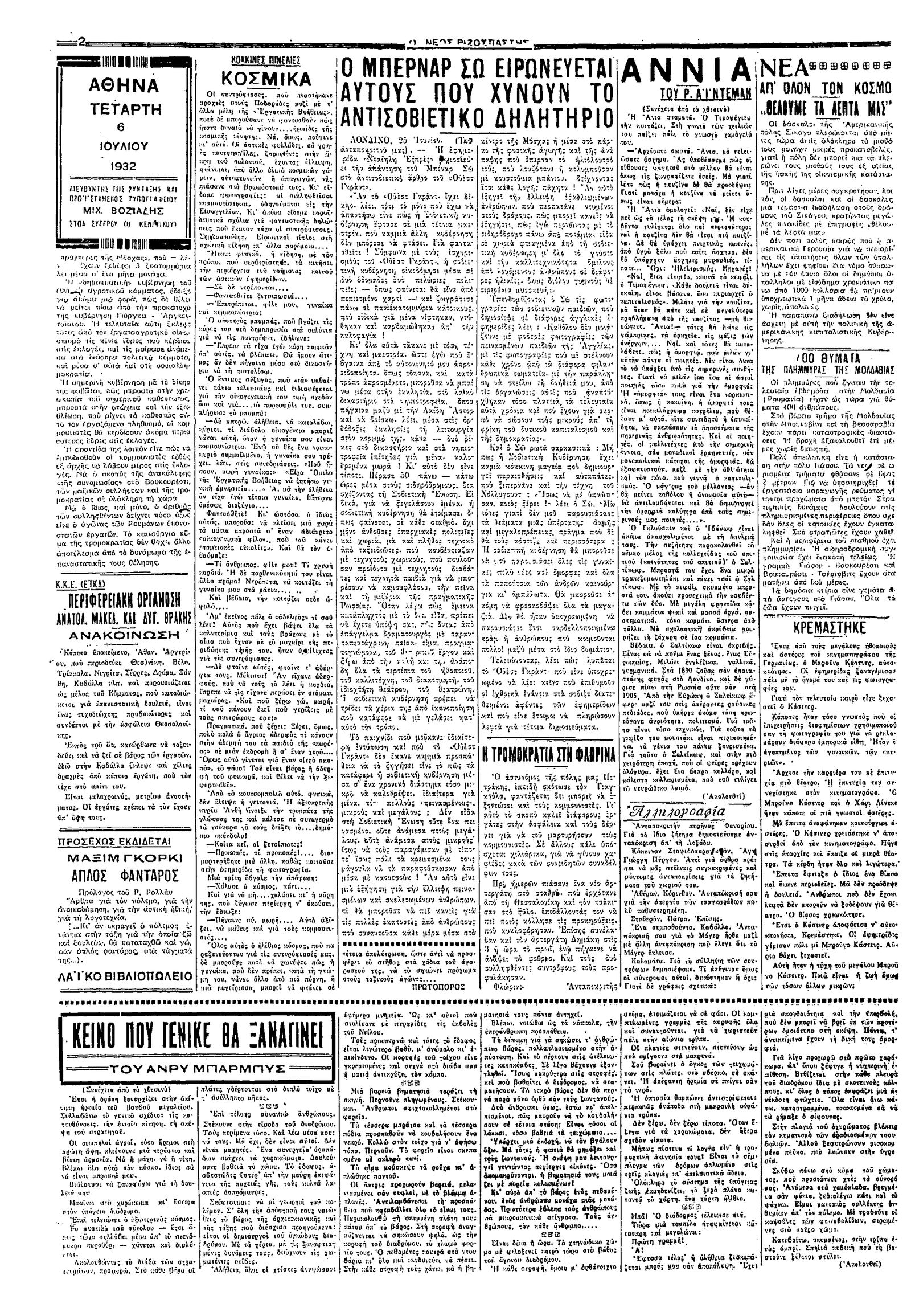 Ριζοσπάστης 06/07/1932