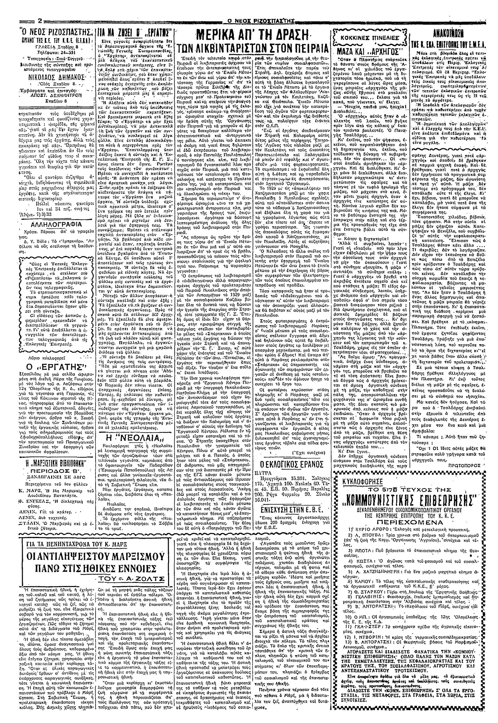Ριζοσπάστης 09/03/1933