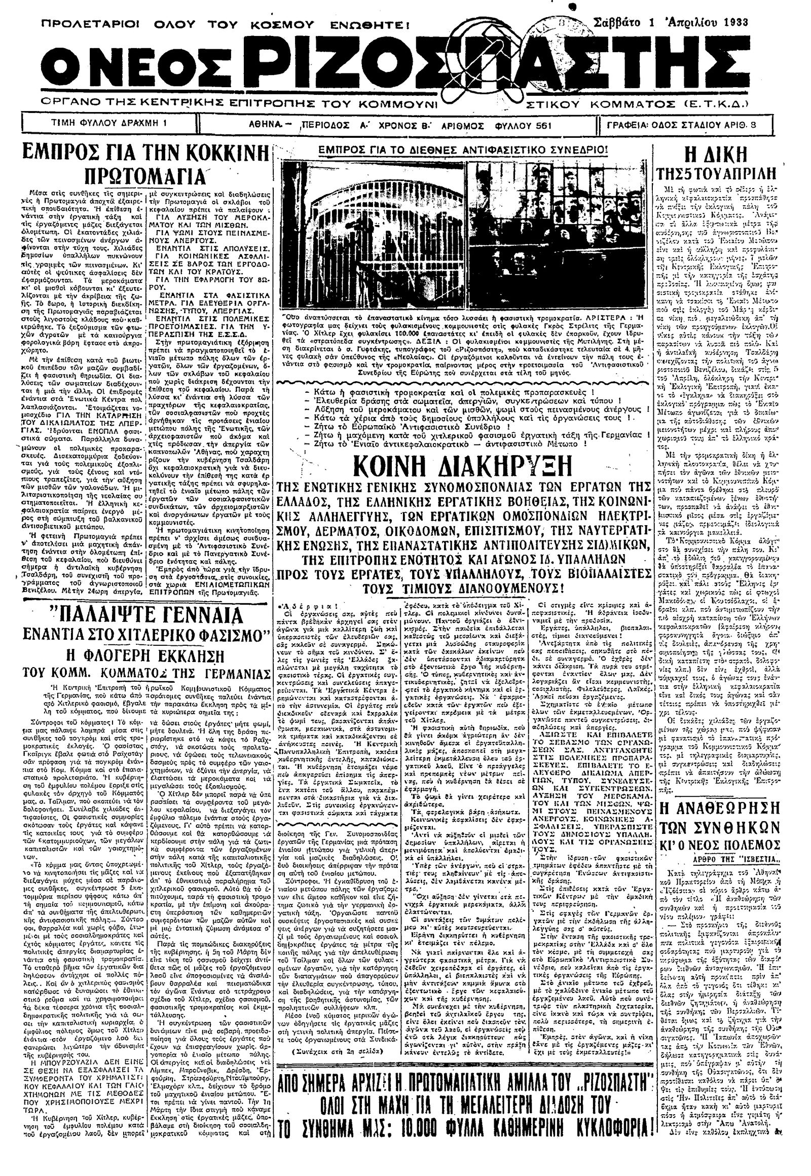 Ριζοσπάστης 01/04/1933