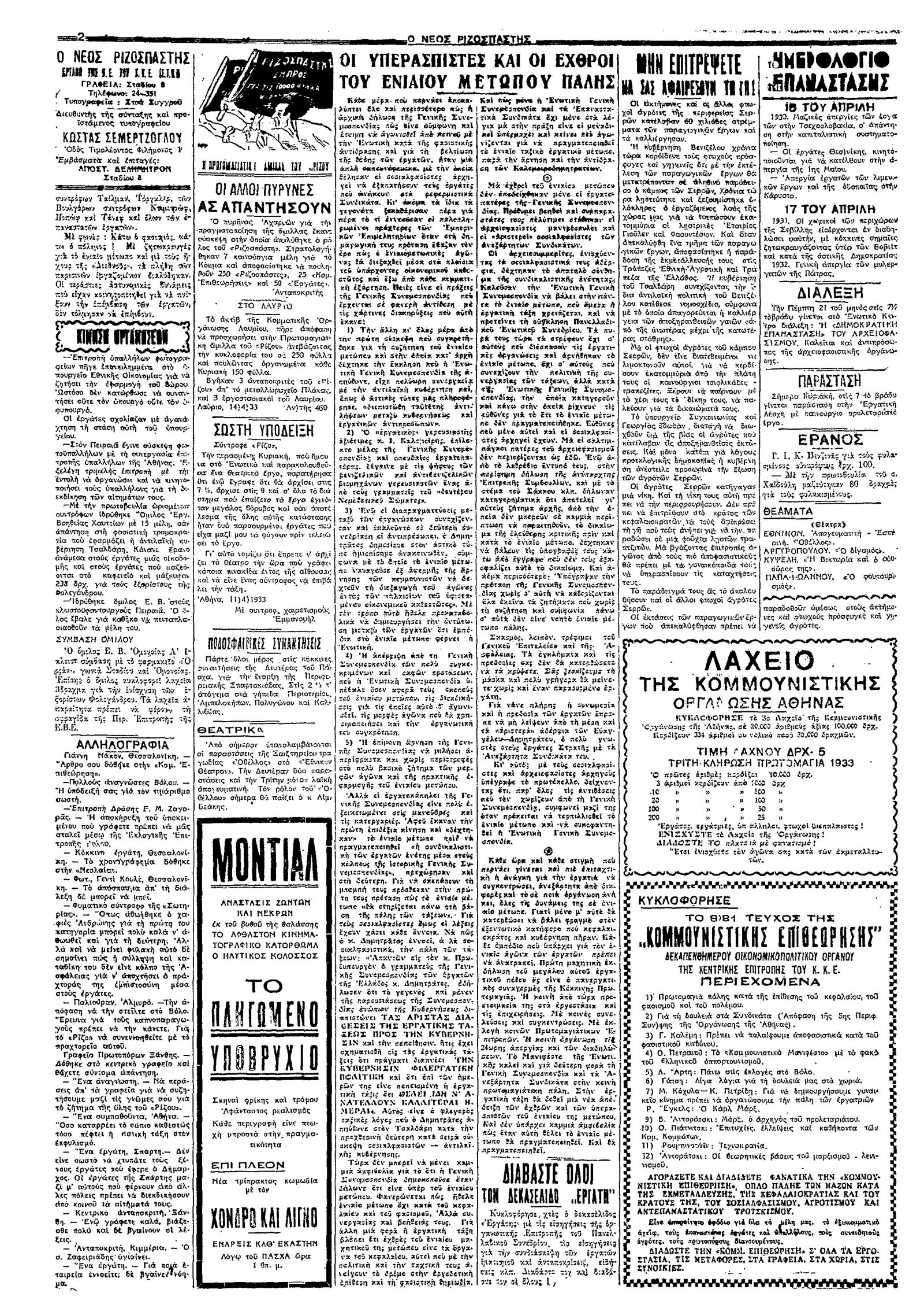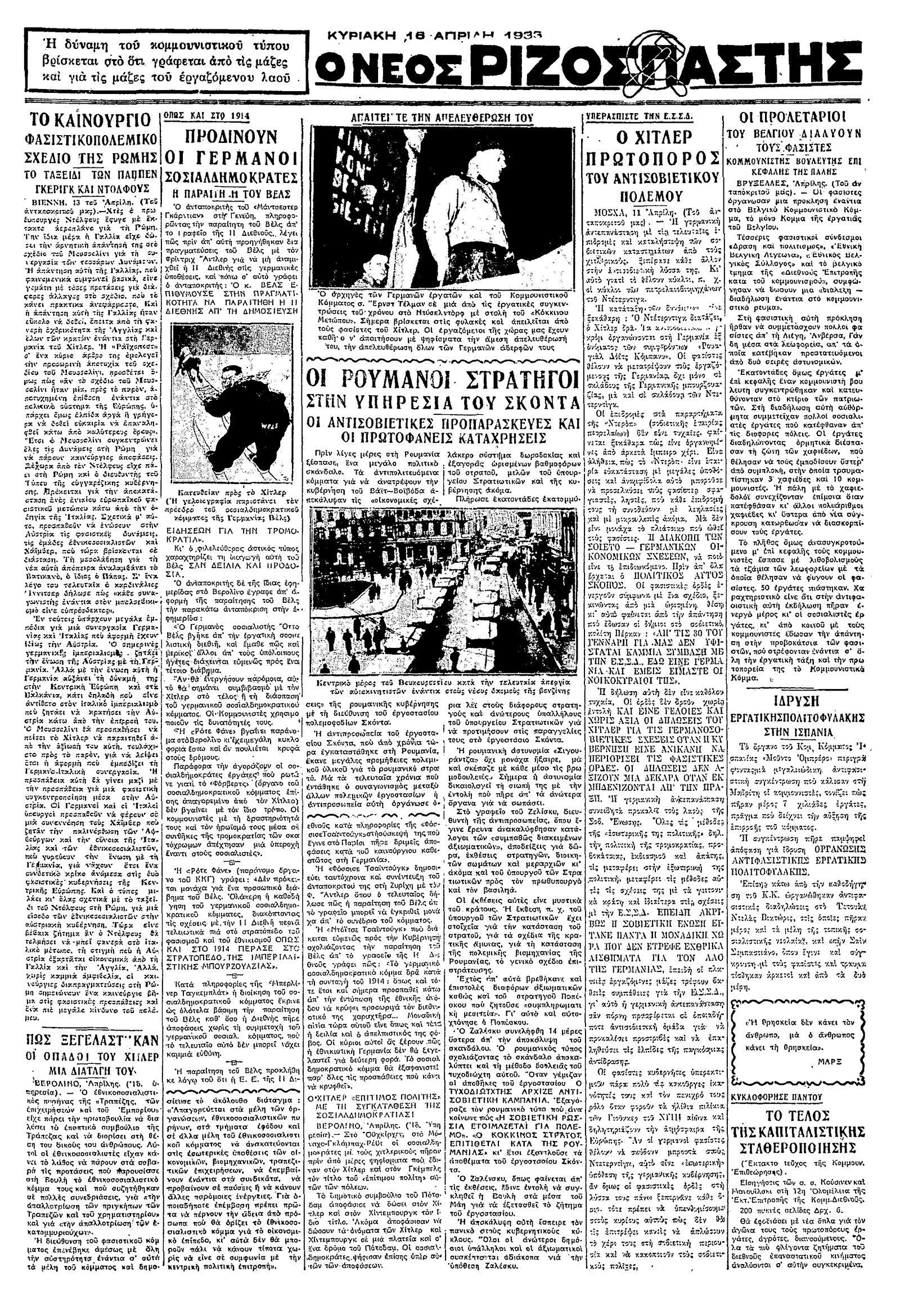 Ριζοσπάστης 16/04/1933