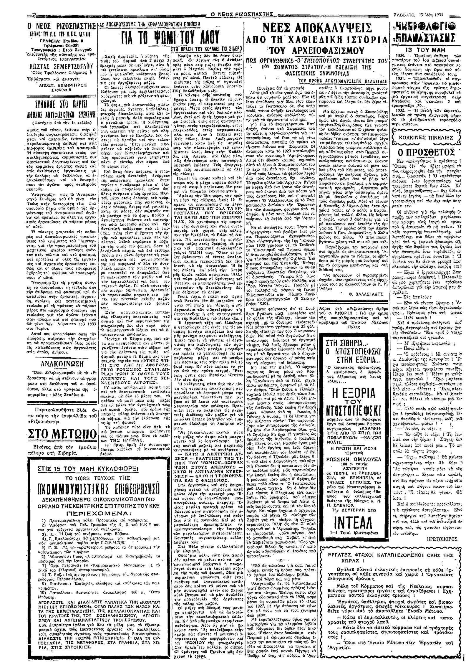 Ριζοσπάστης 13/05/1933