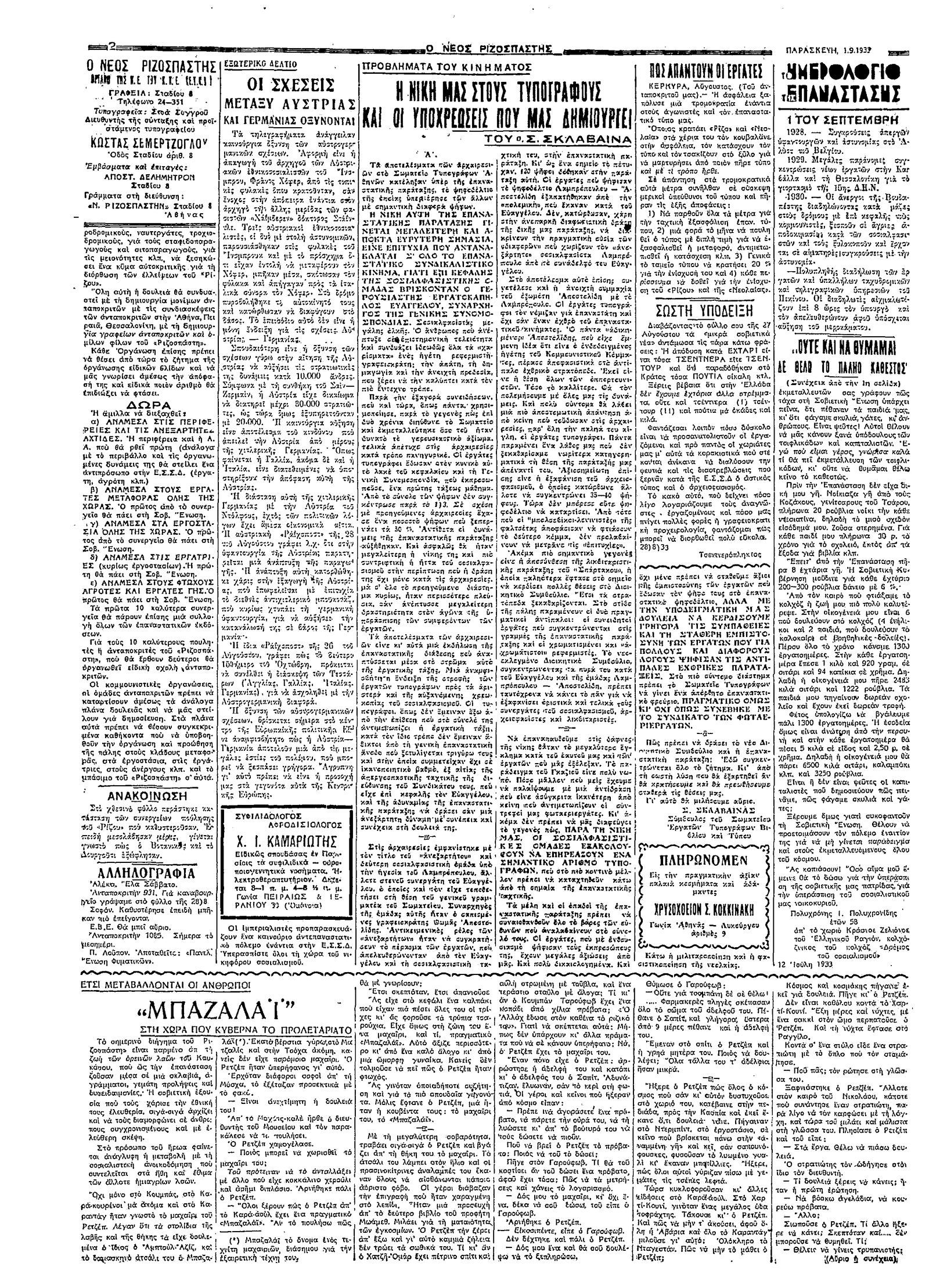 Ριζοσπάστης 01/09/1933