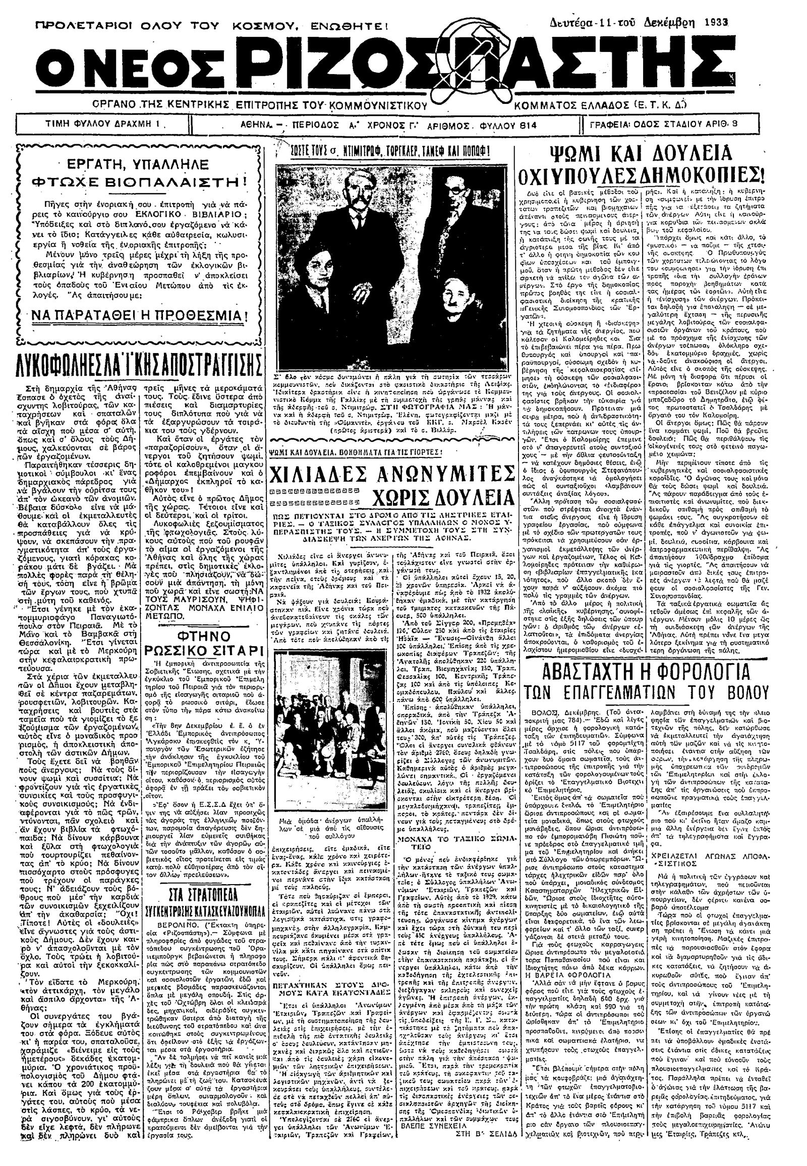 Ριζοσπάστης 11/12/1933