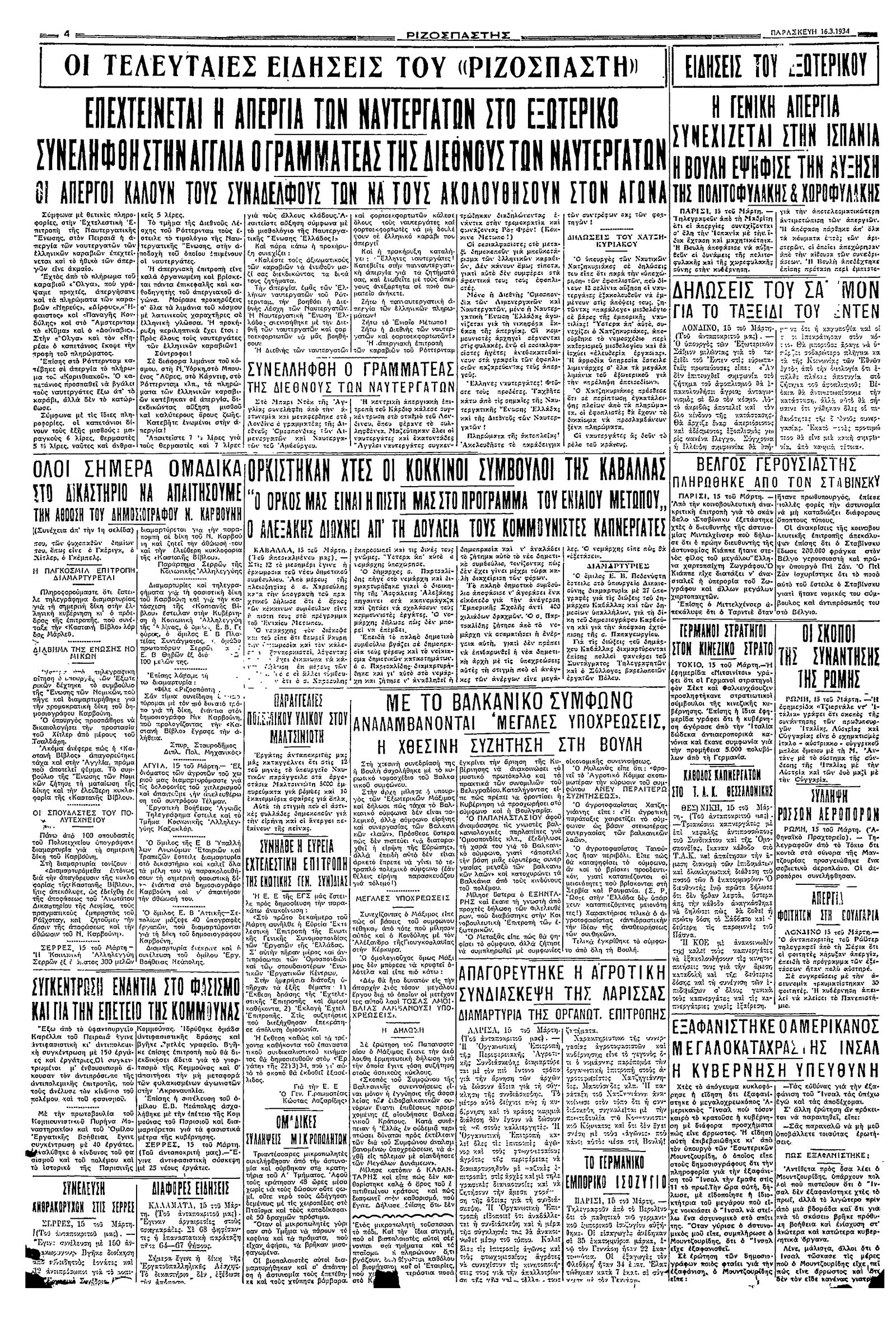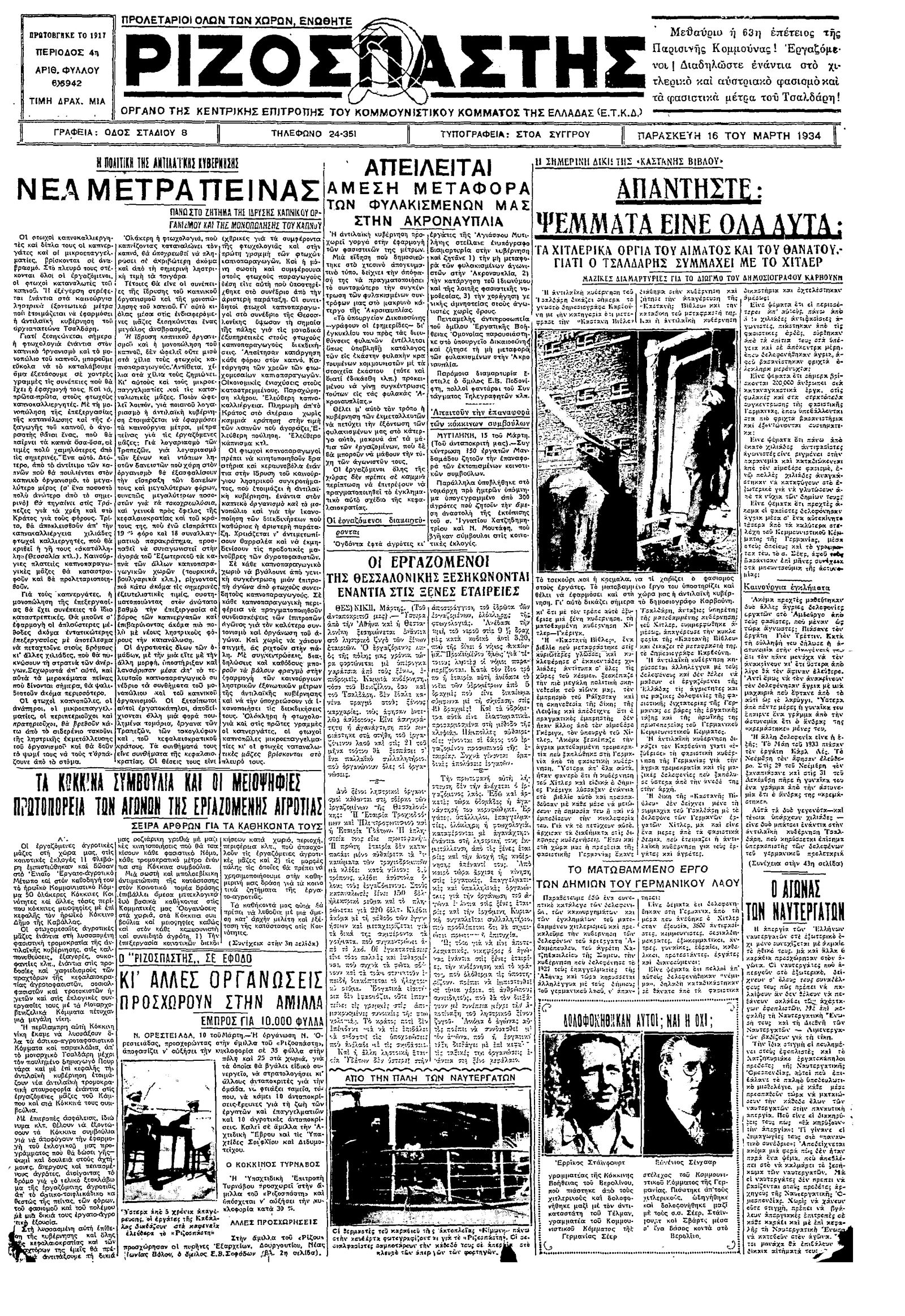Ριζοσπάστης 16/03/1934