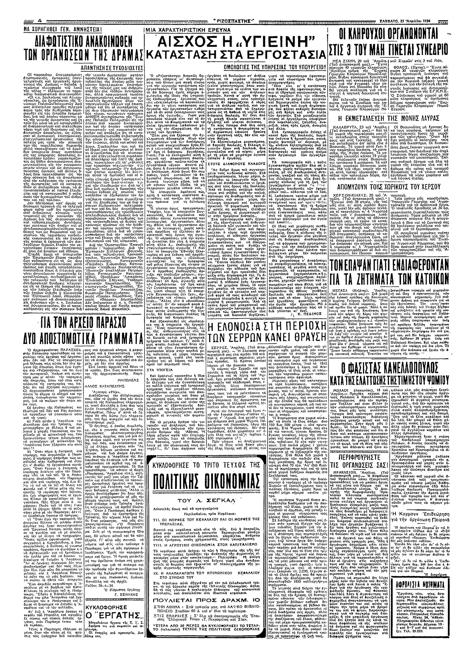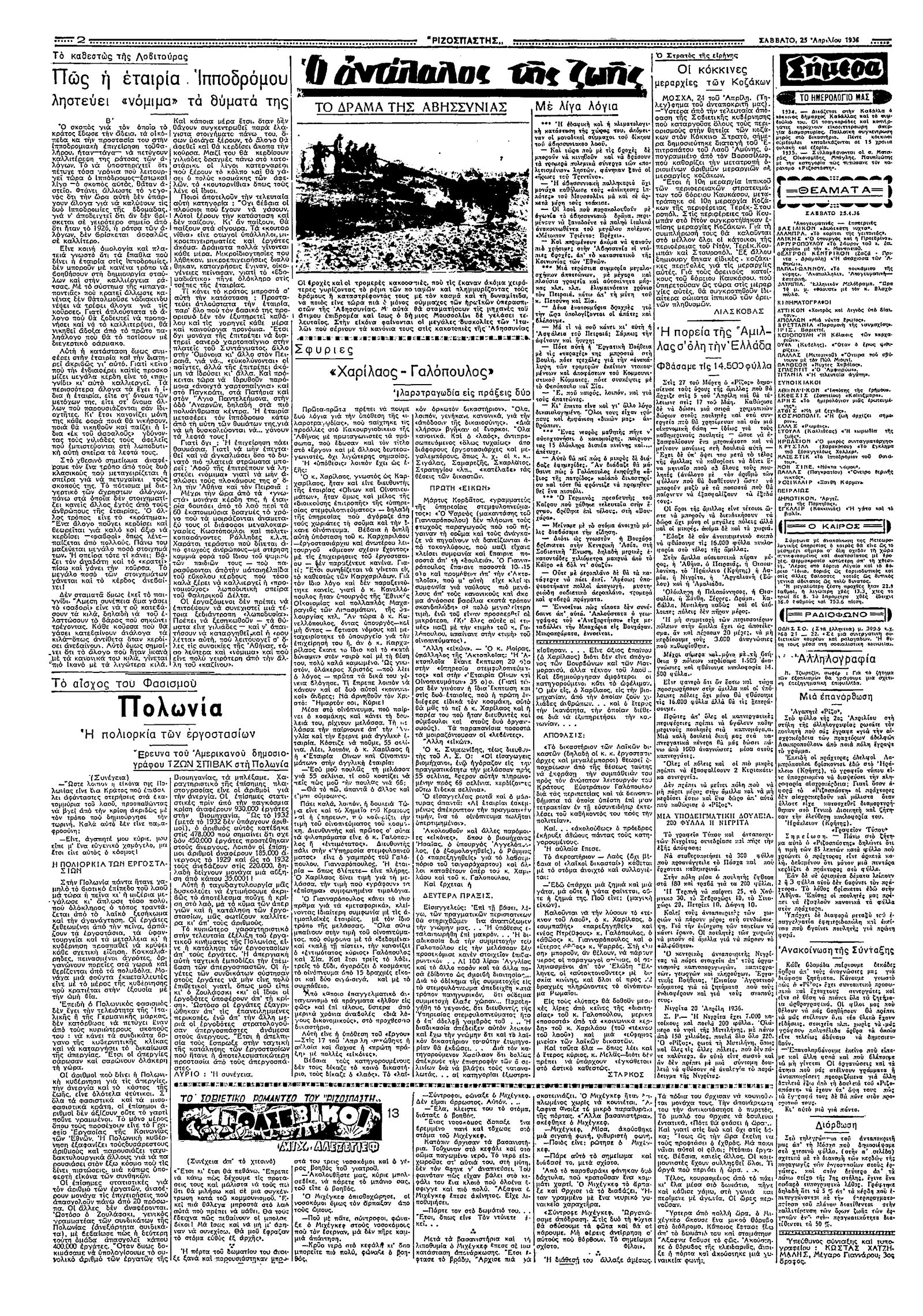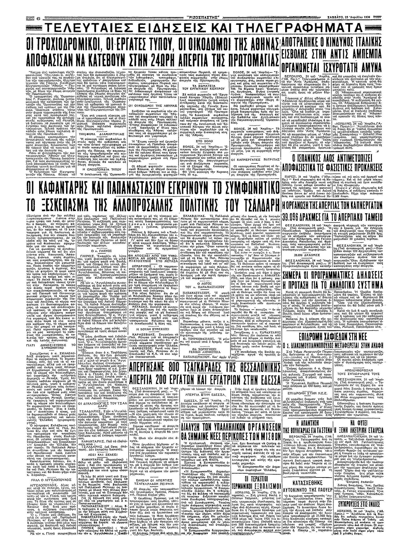 Ριζοσπάστης 25/04/1936