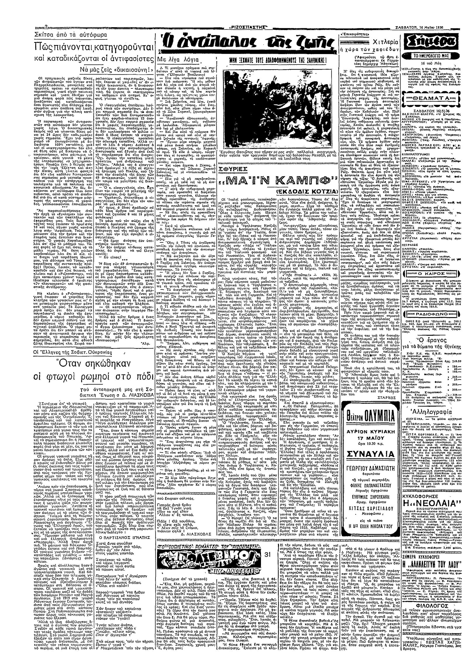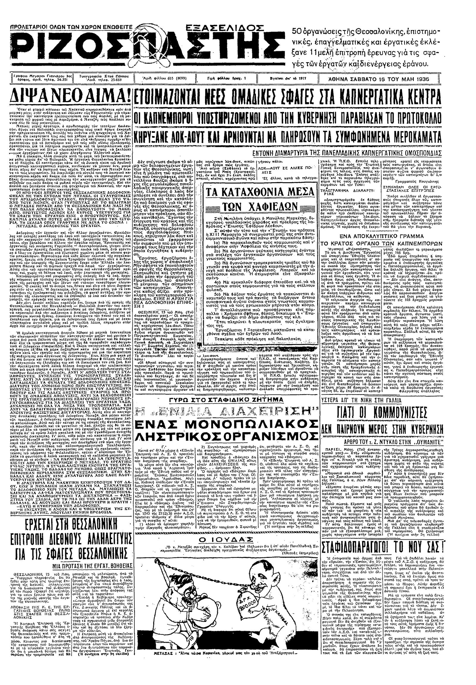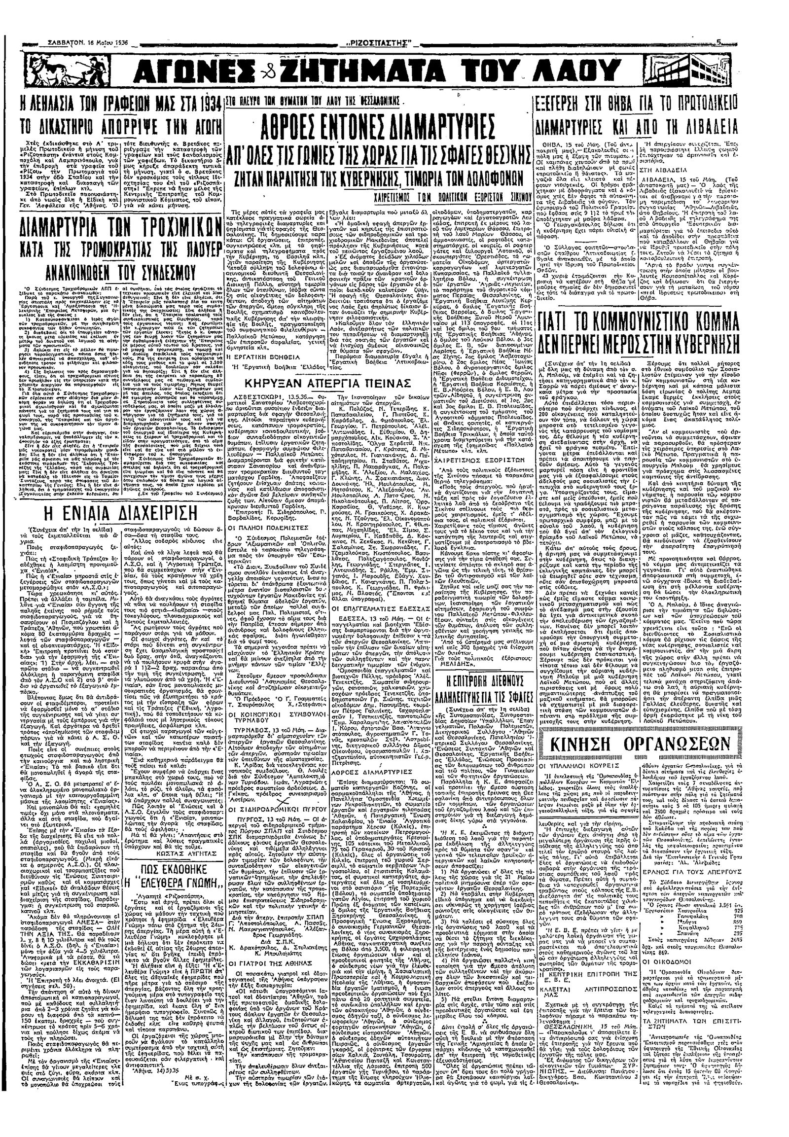 Ριζοσπάστης 16/05/1936