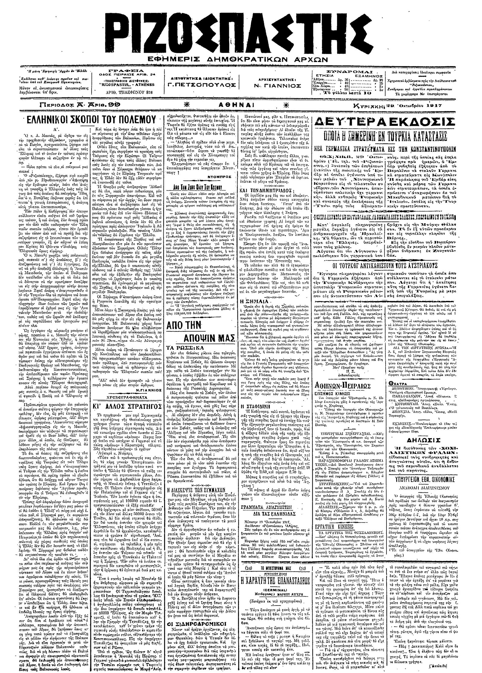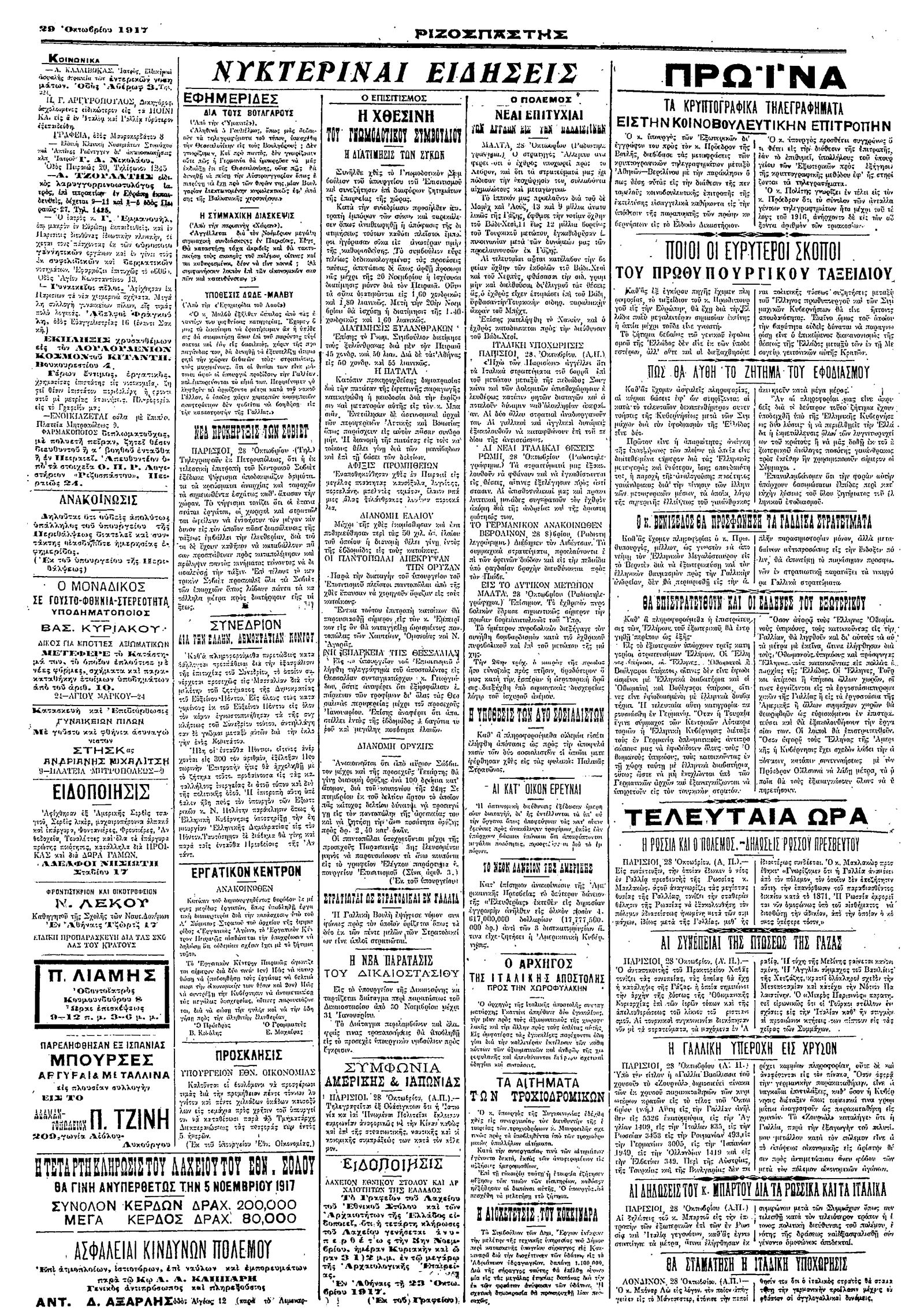 Ριζοσπάστης 29/10/1917