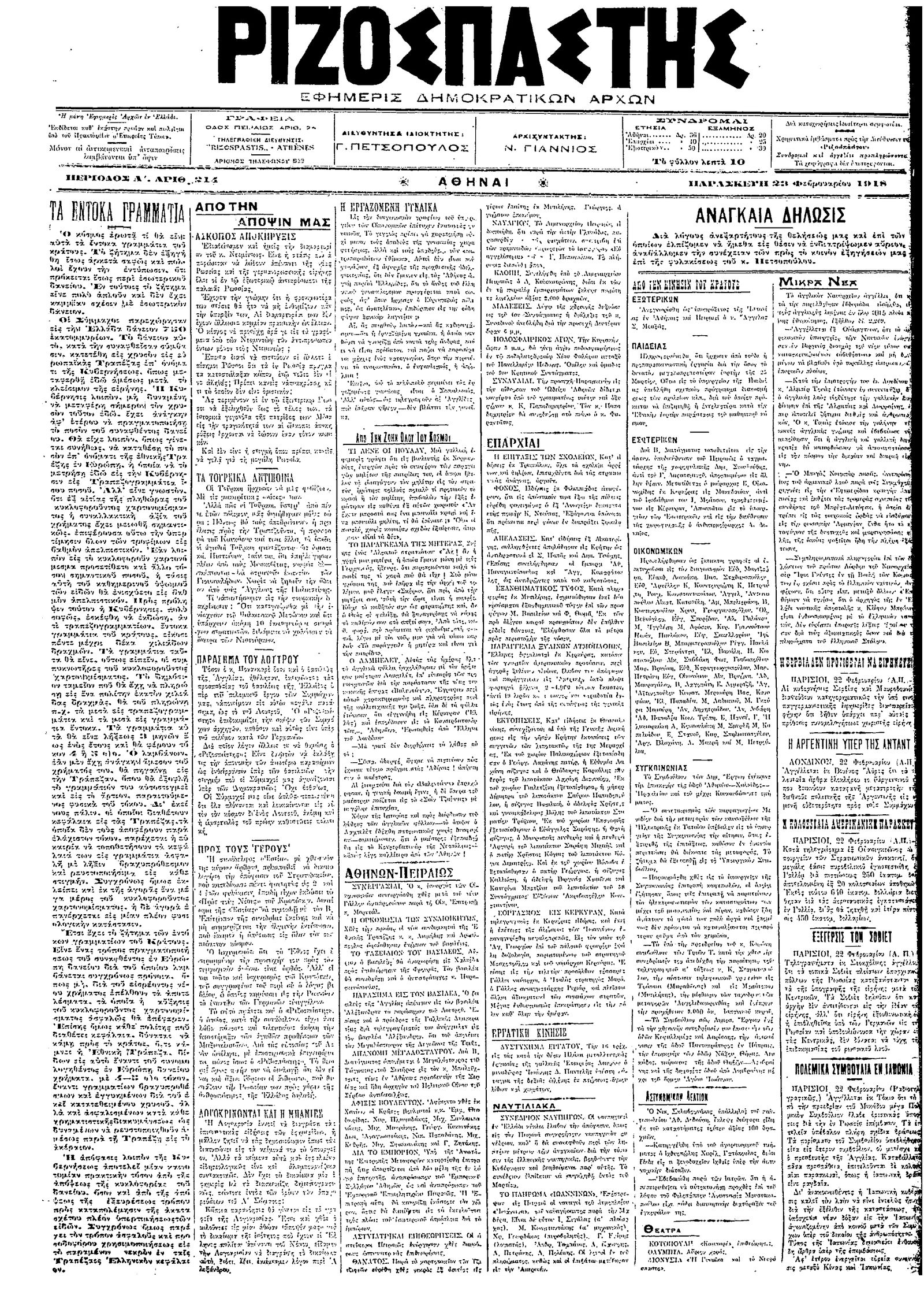 Ριζοσπάστης 23/02/1918