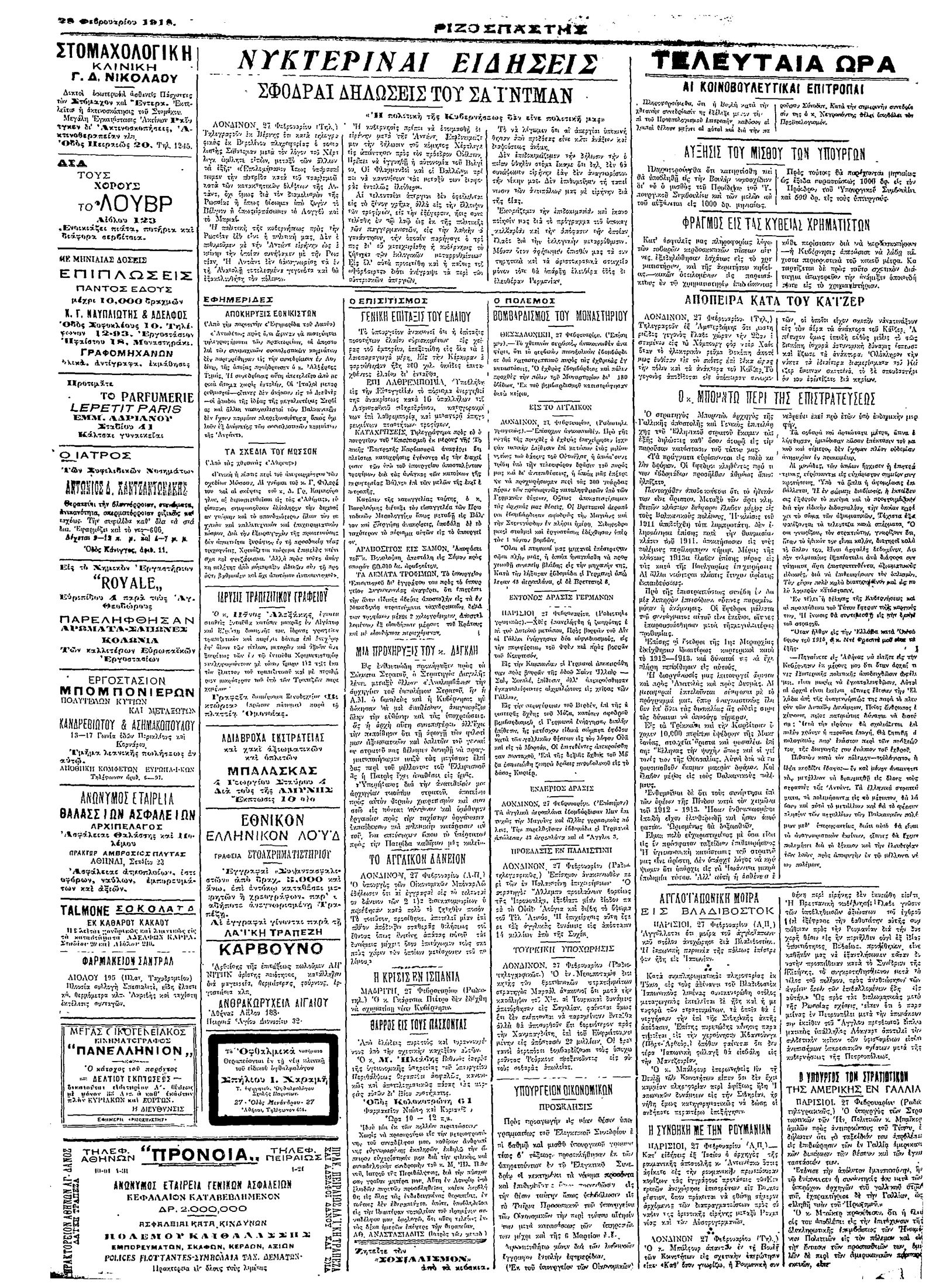 Ριζοσπάστης 28/02/1918