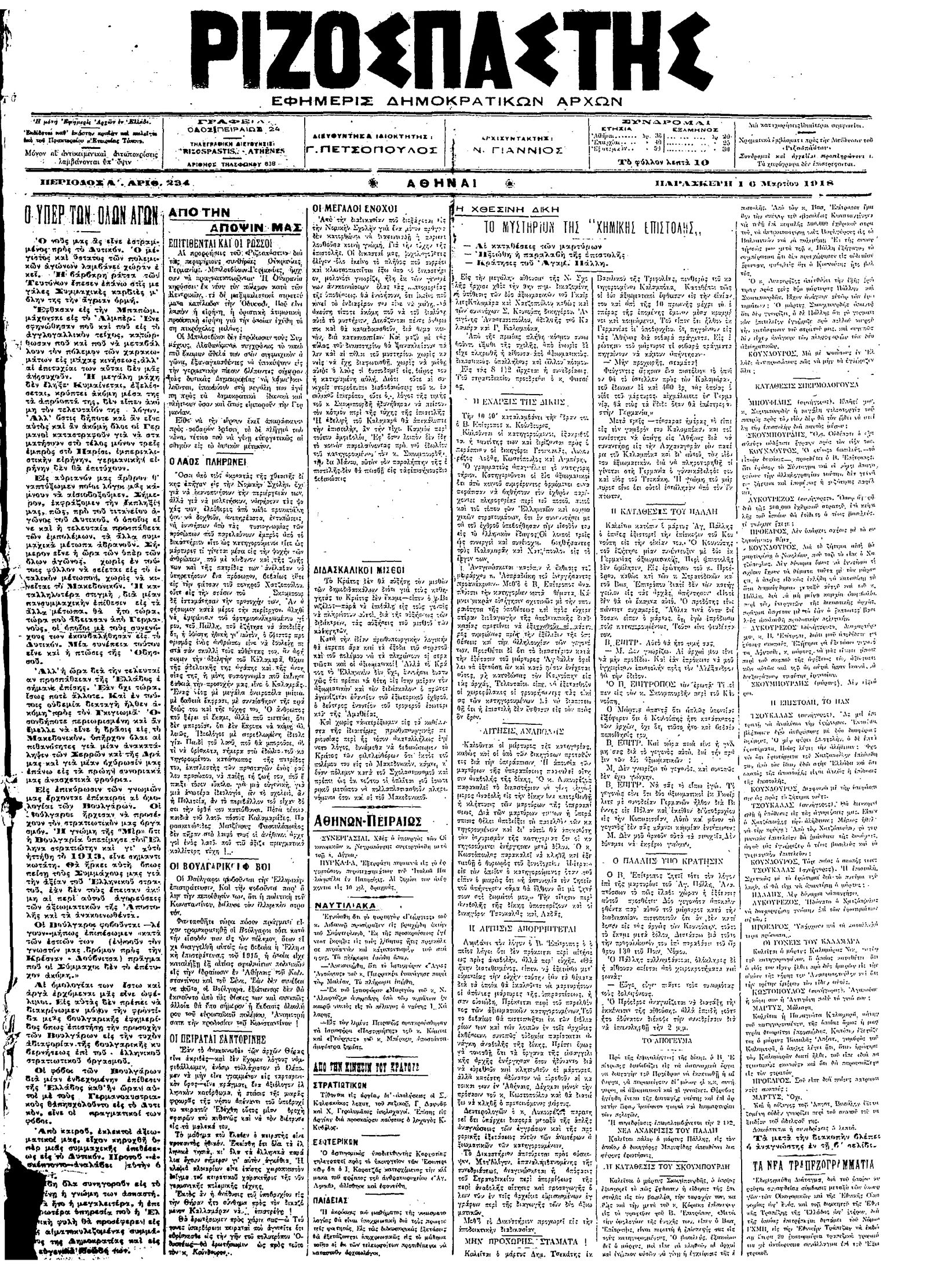 Ριζοσπάστης 16/03/1918