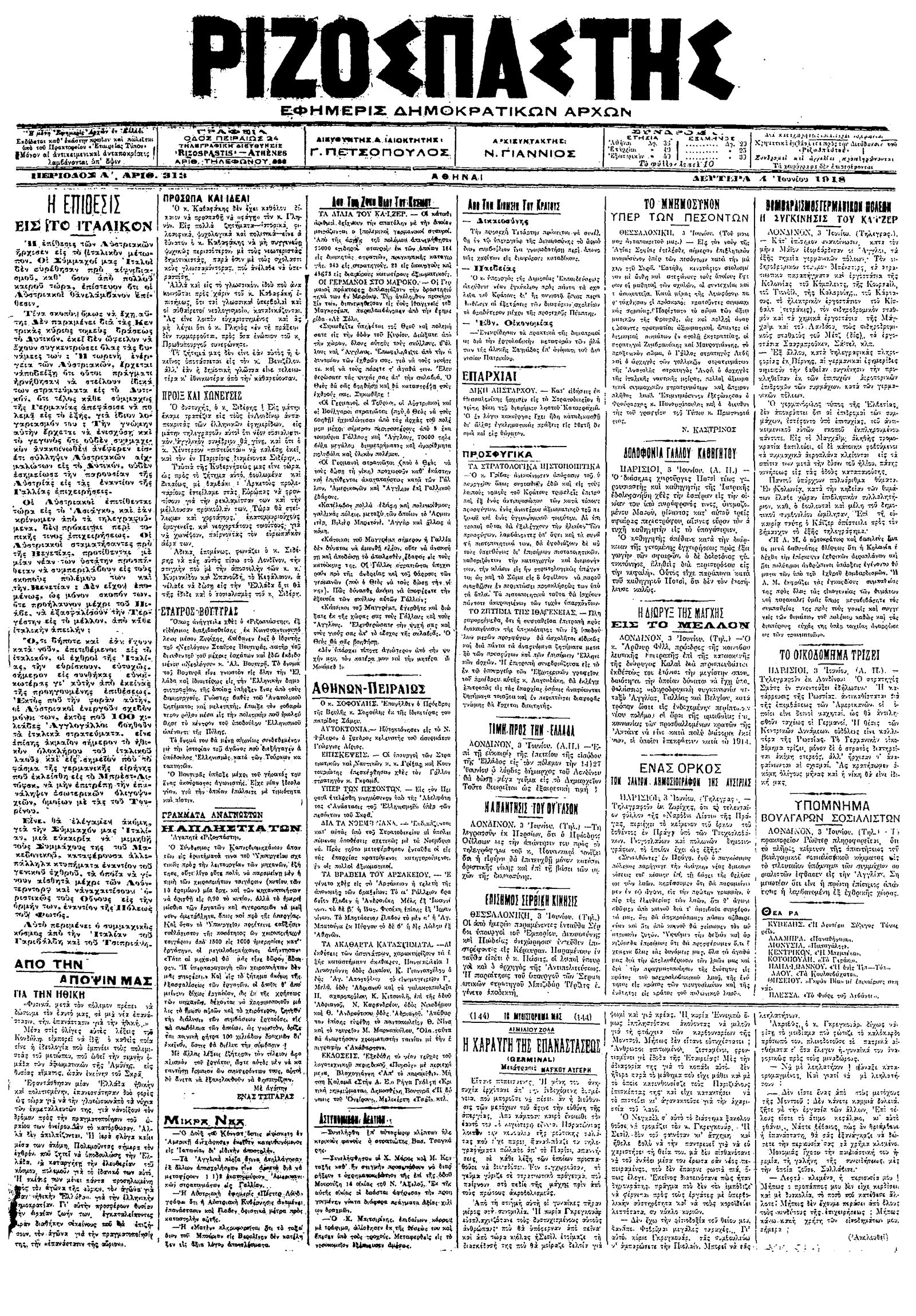 Ριζοσπάστης 04/06/1918