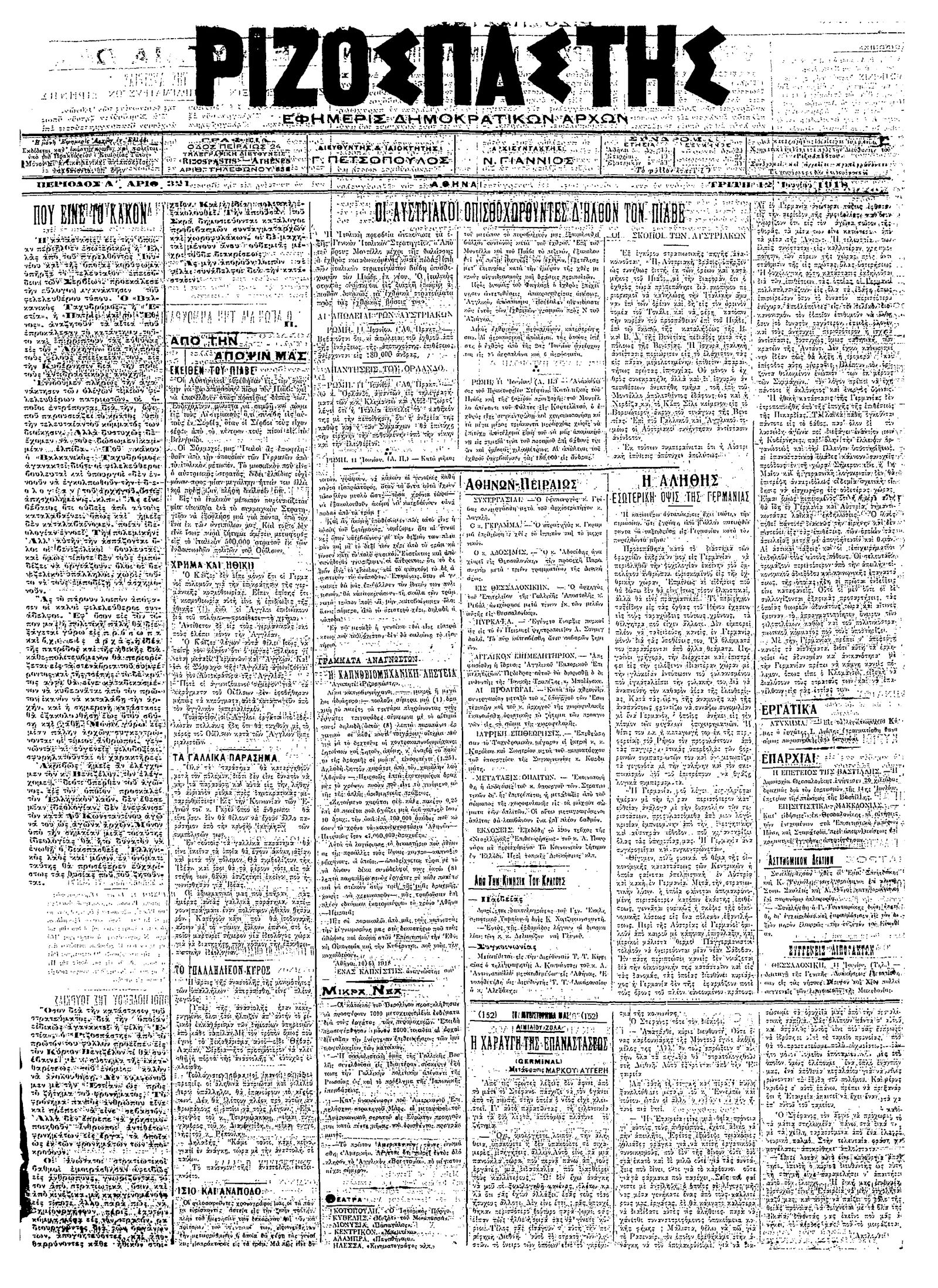 Ριζοσπάστης 12/06/1918