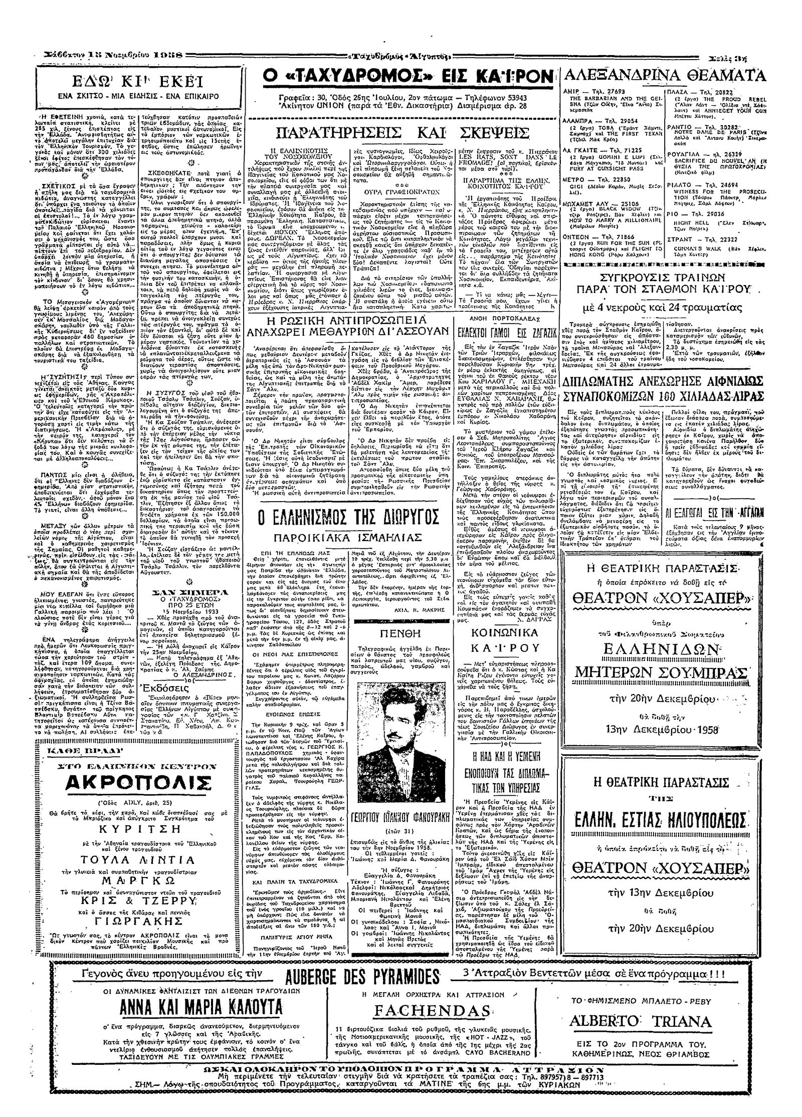 Ταχυδρόμος 15/11/1958