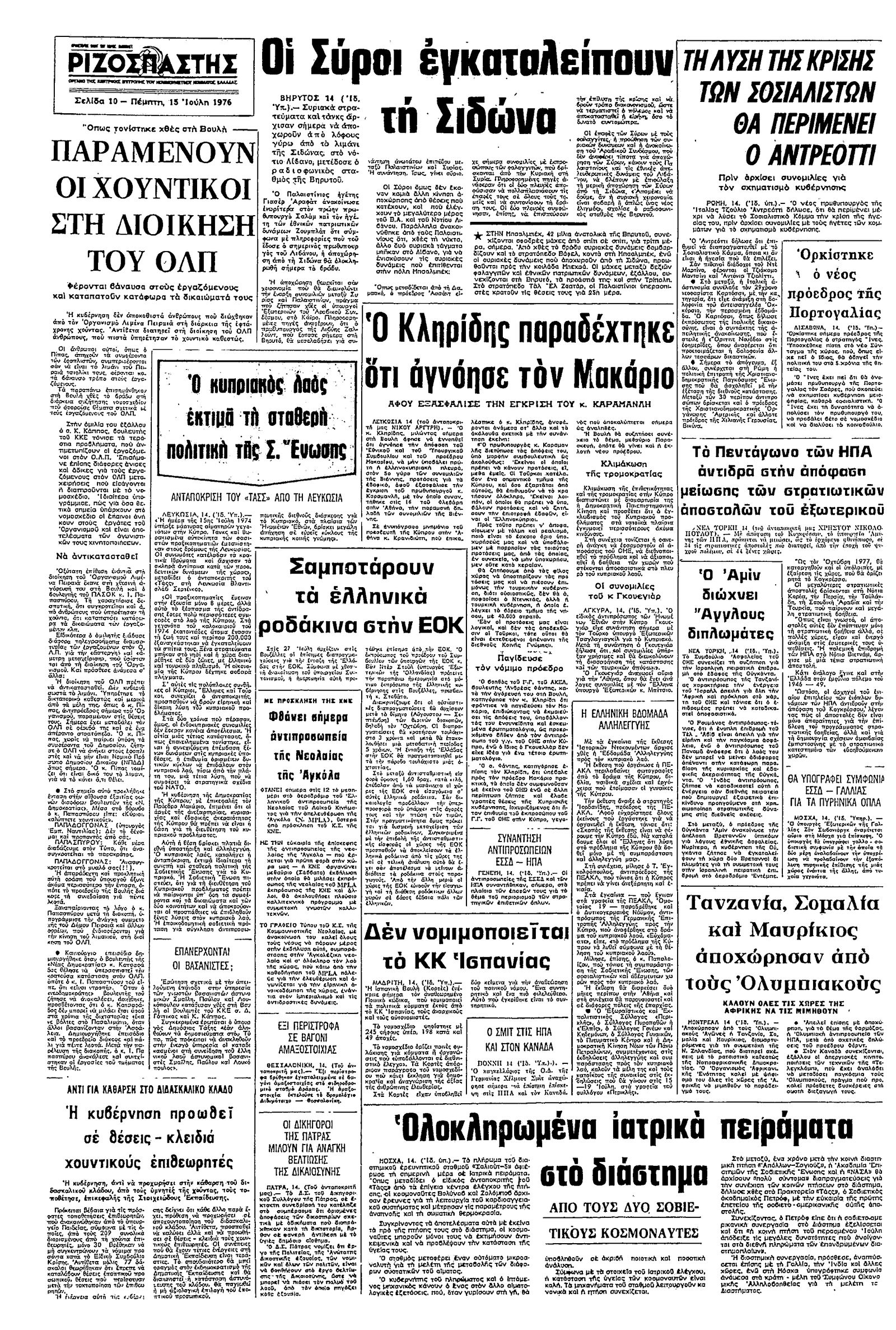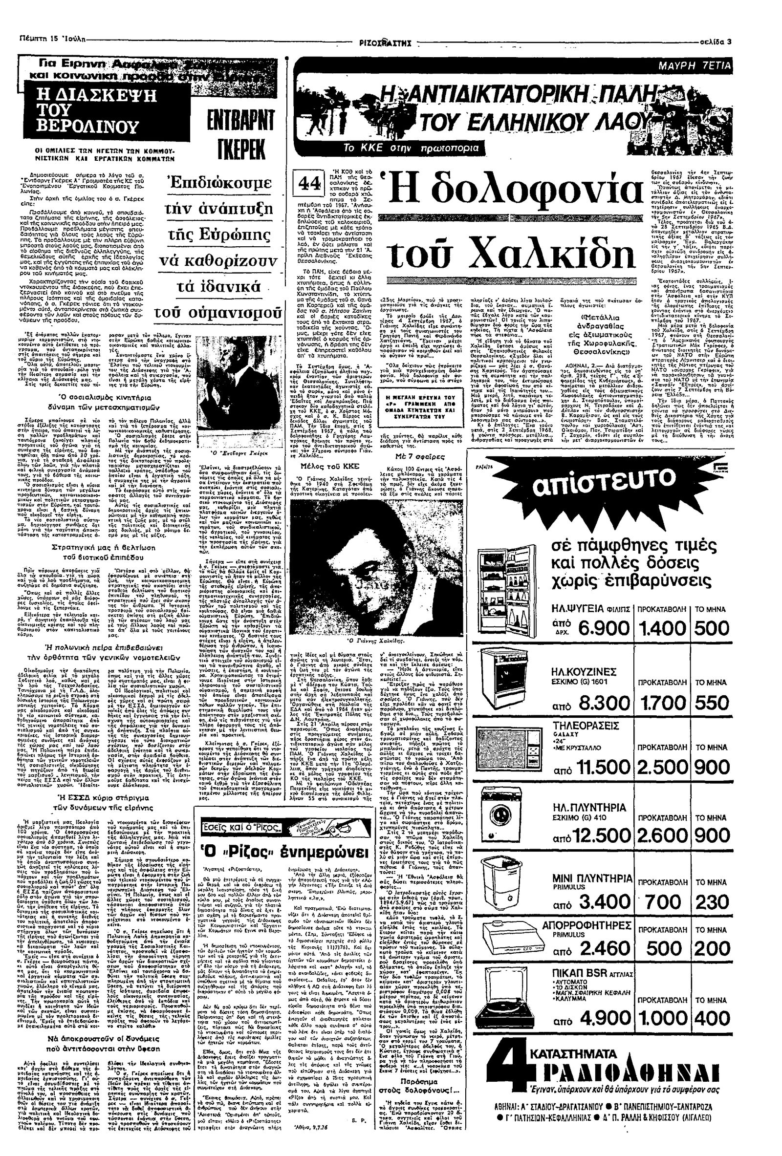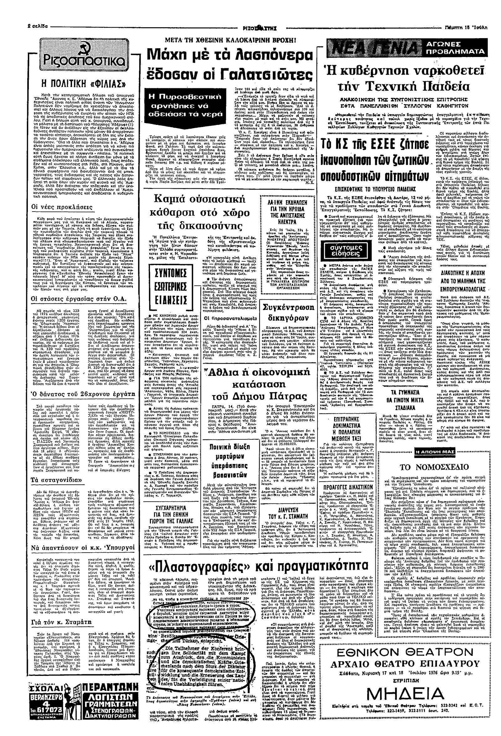 Ριζοσπάστης 15/07/1976
