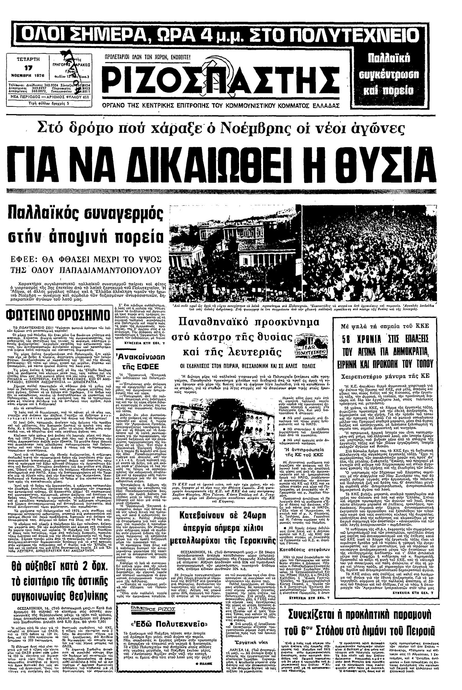 Ριζοσπάστης 17/11/1976