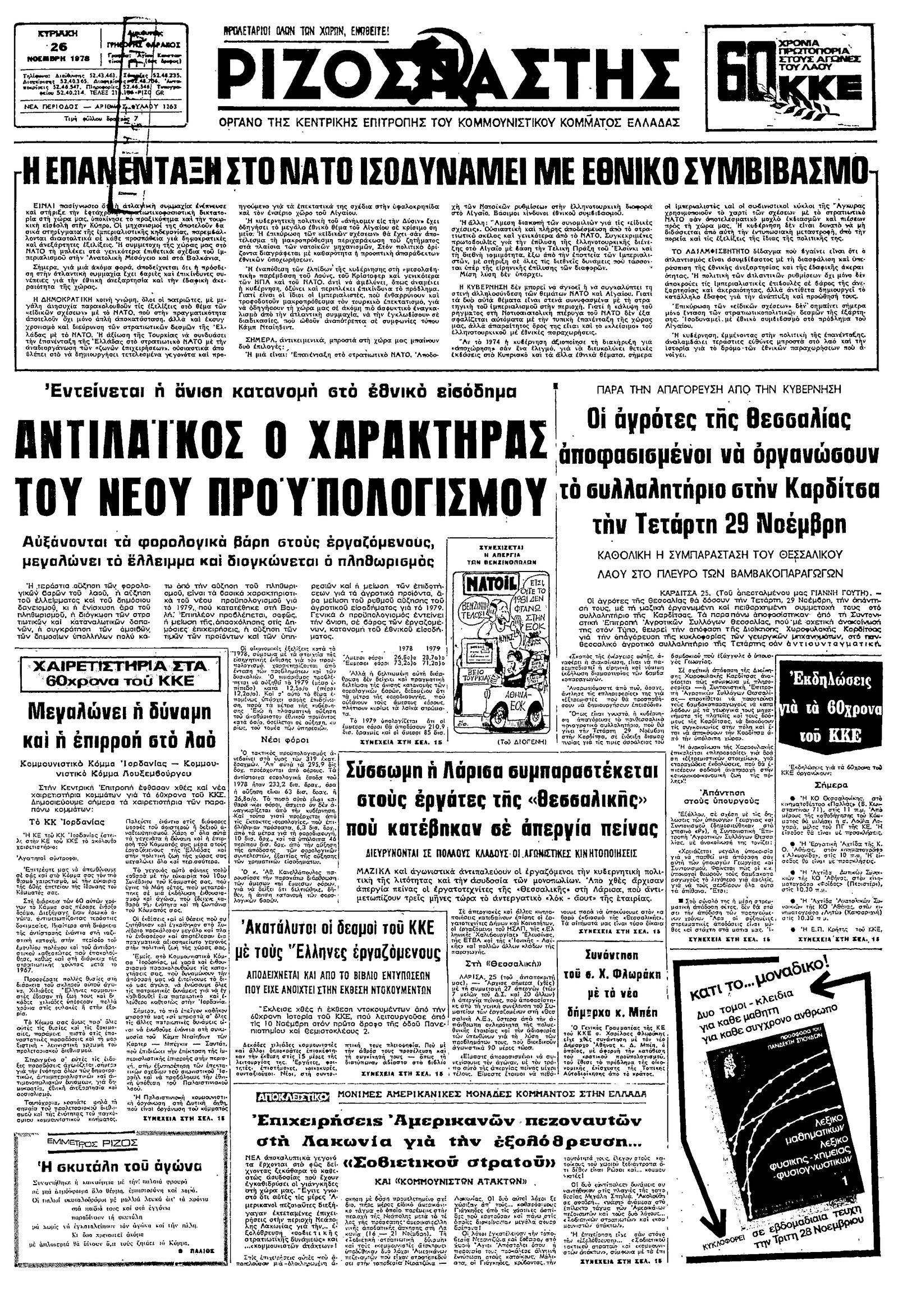 Ριζοσπάστης 26/11/1978