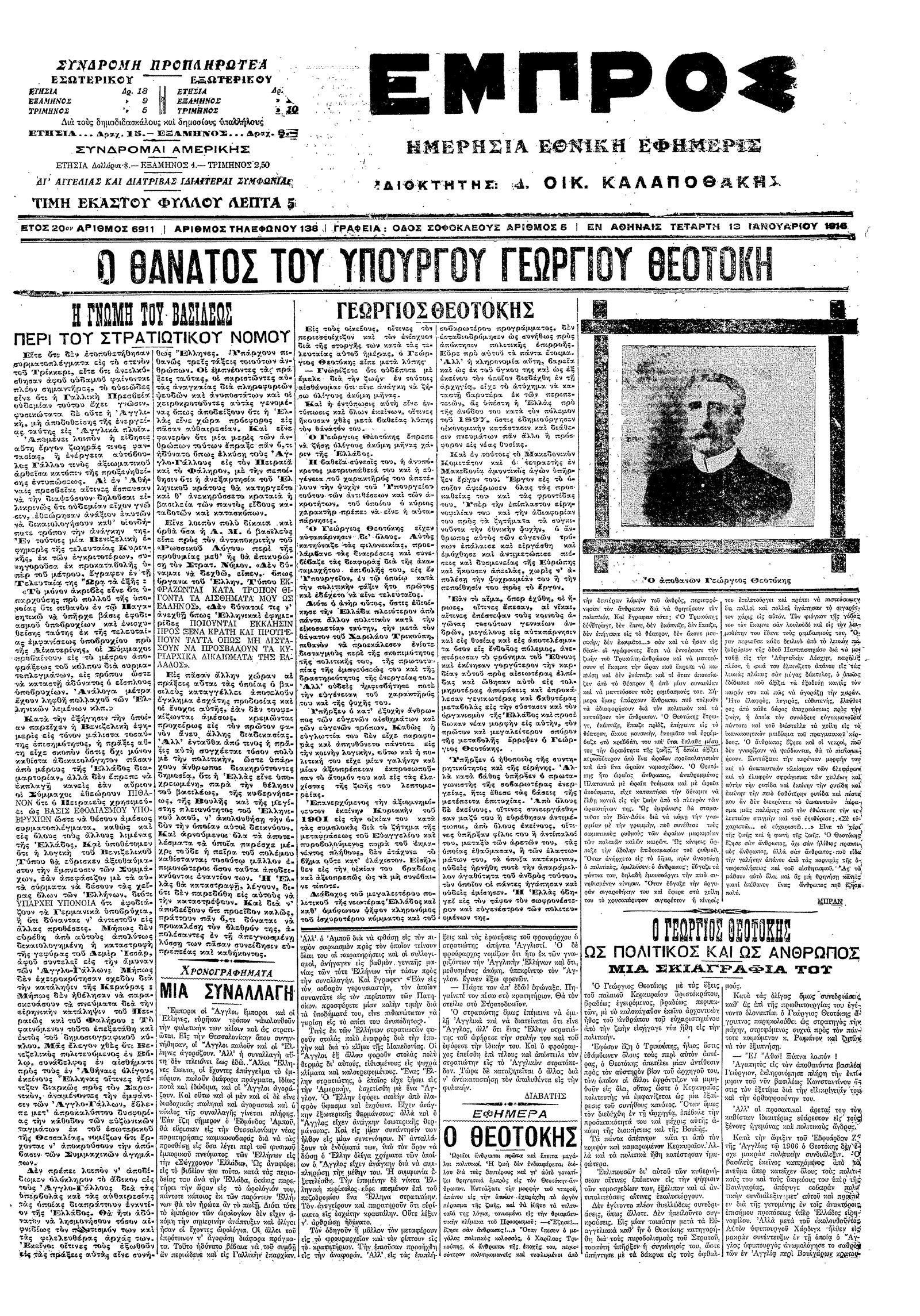 Εμπρός 13/01/1916