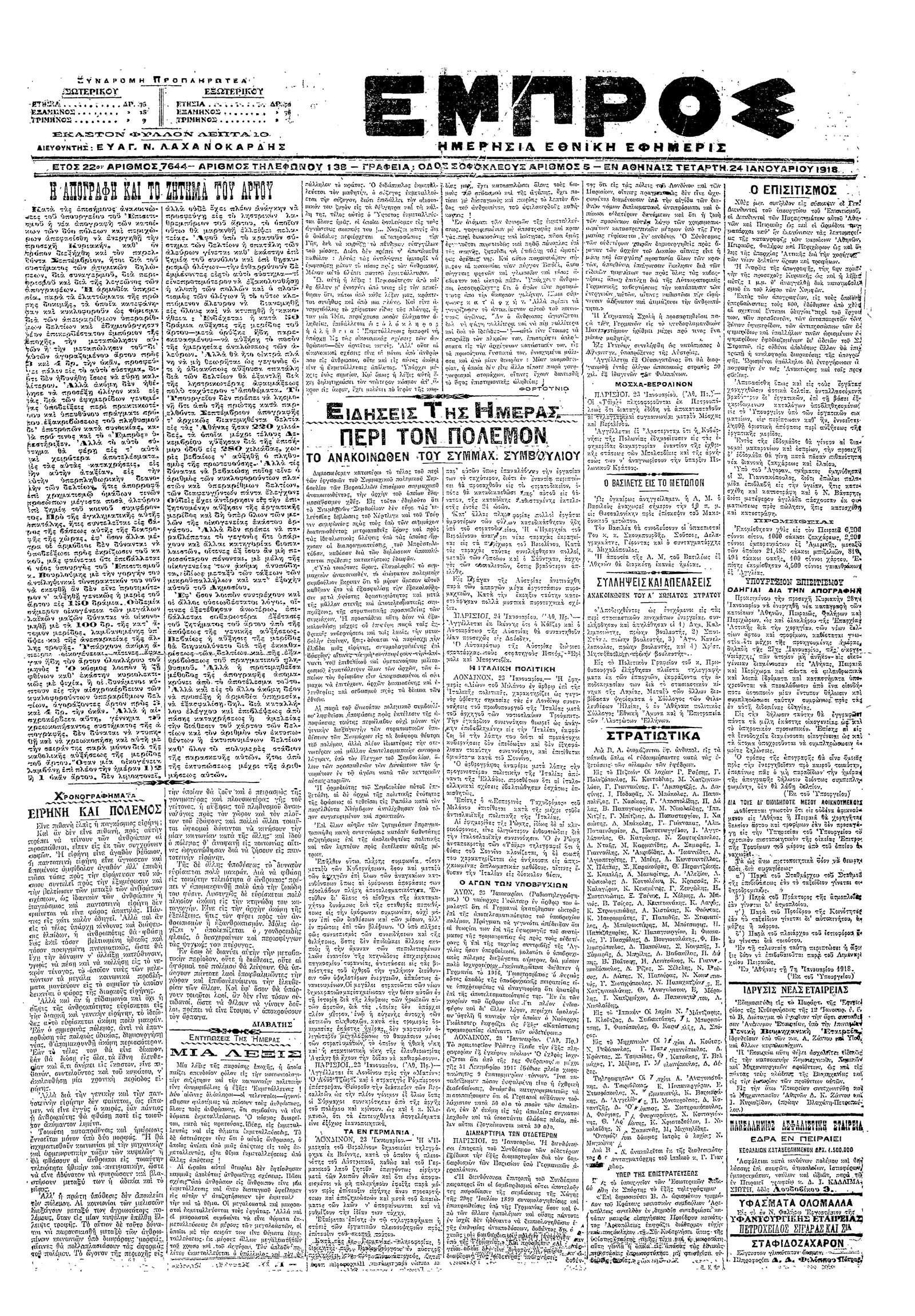 Εμπρός 24/01/1918