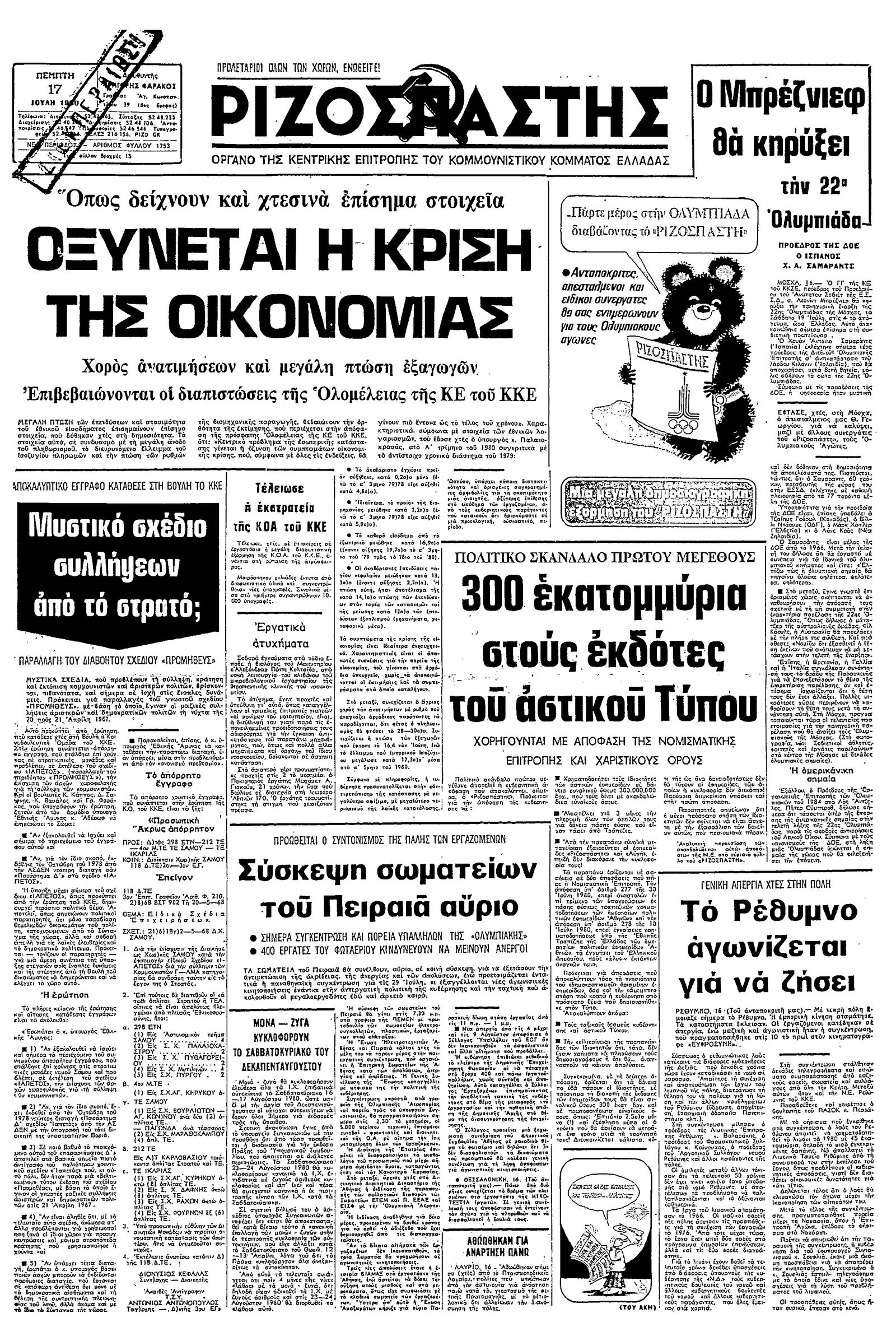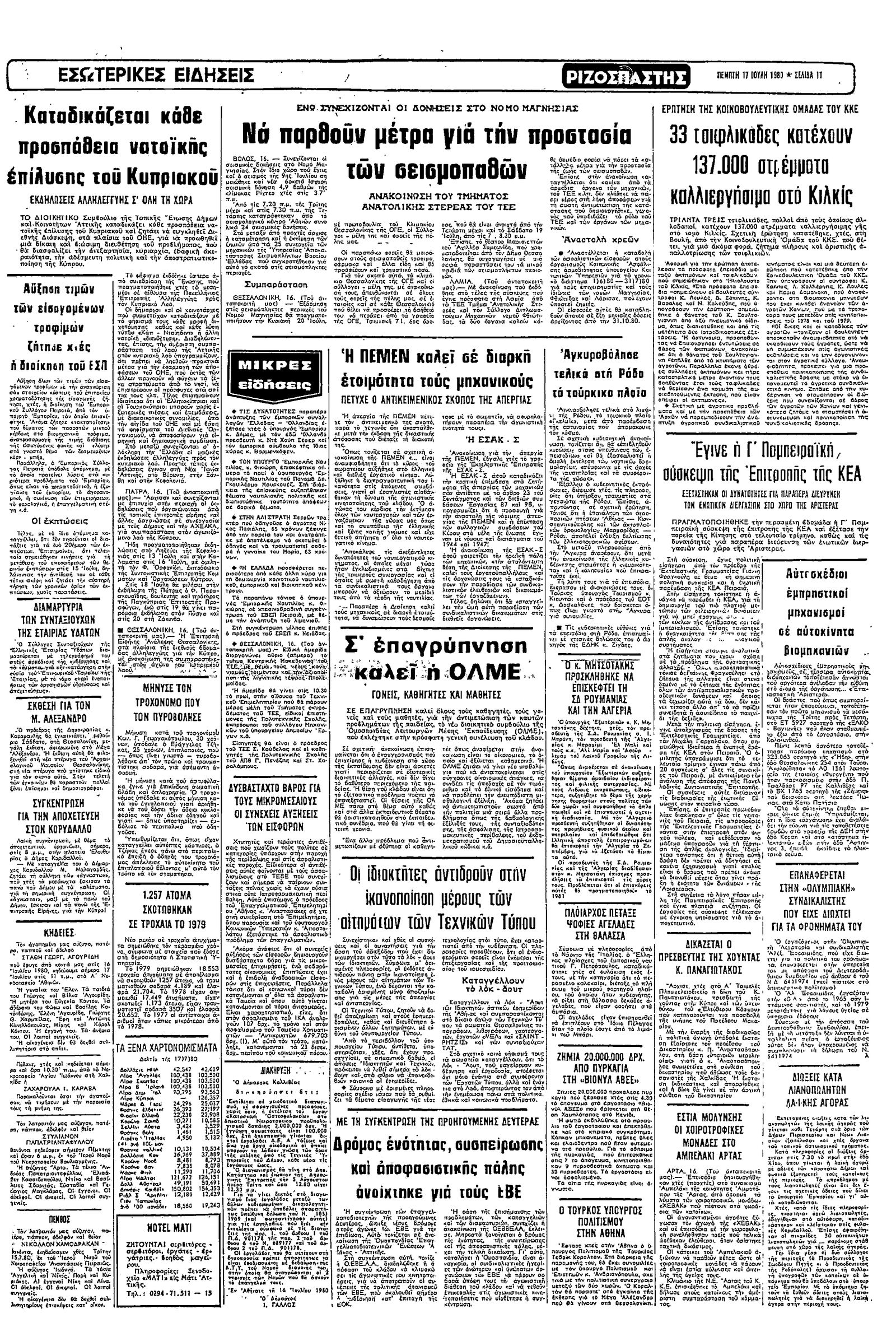 Ριζοσπάστης 17/07/1980