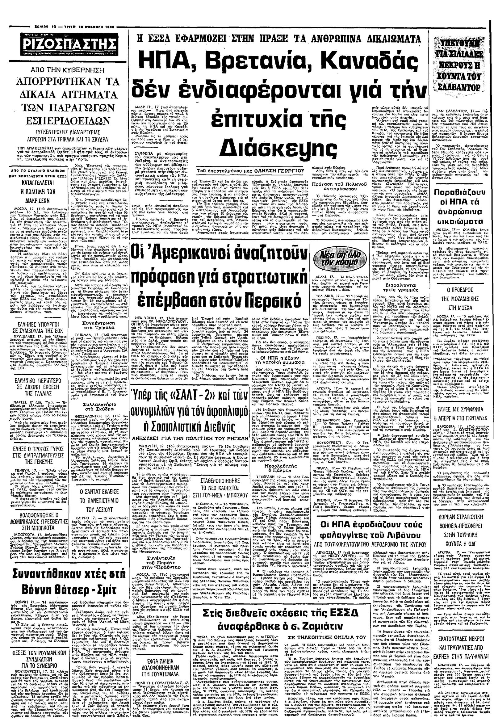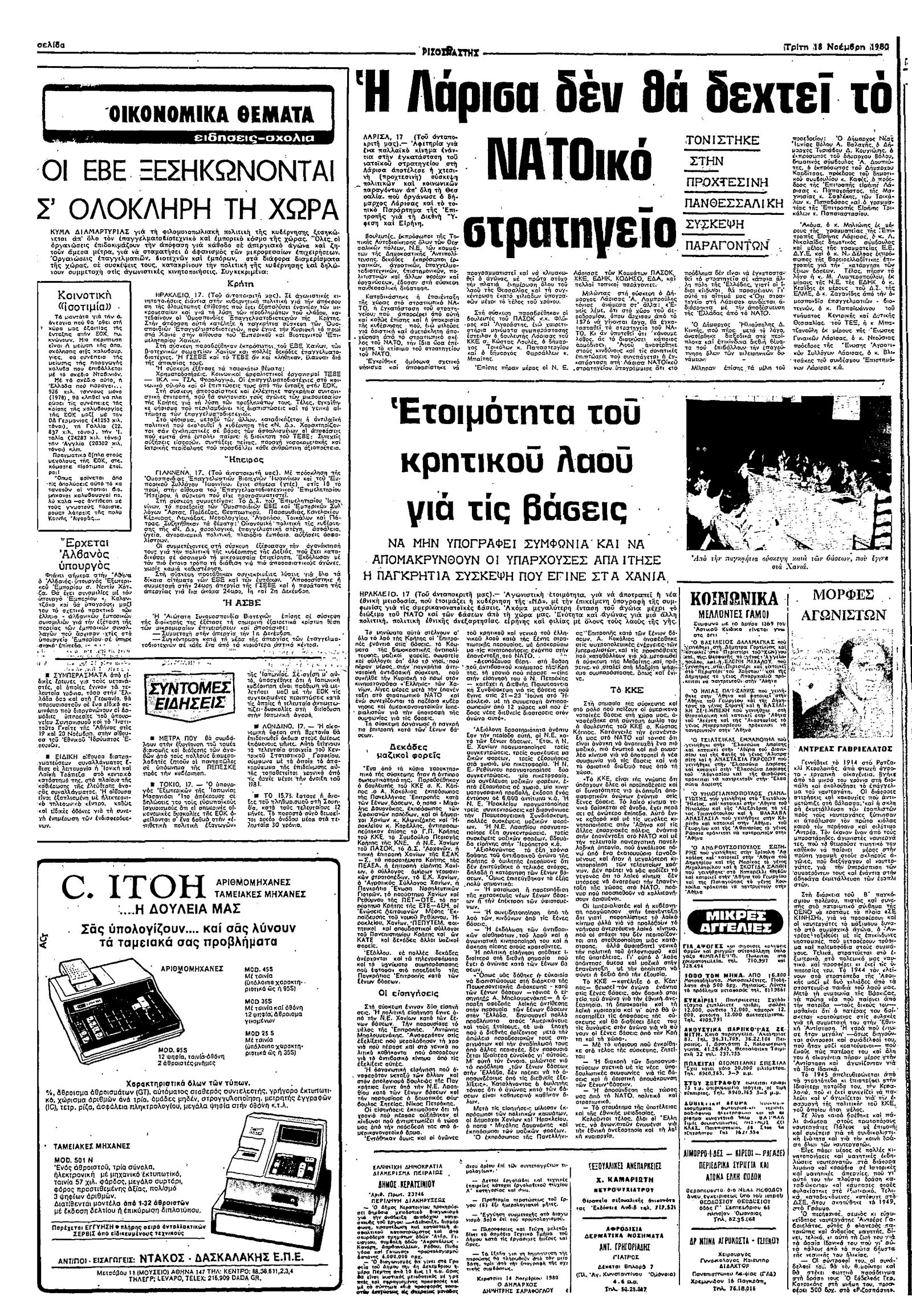 Ριζοσπάστης 18/11/1980