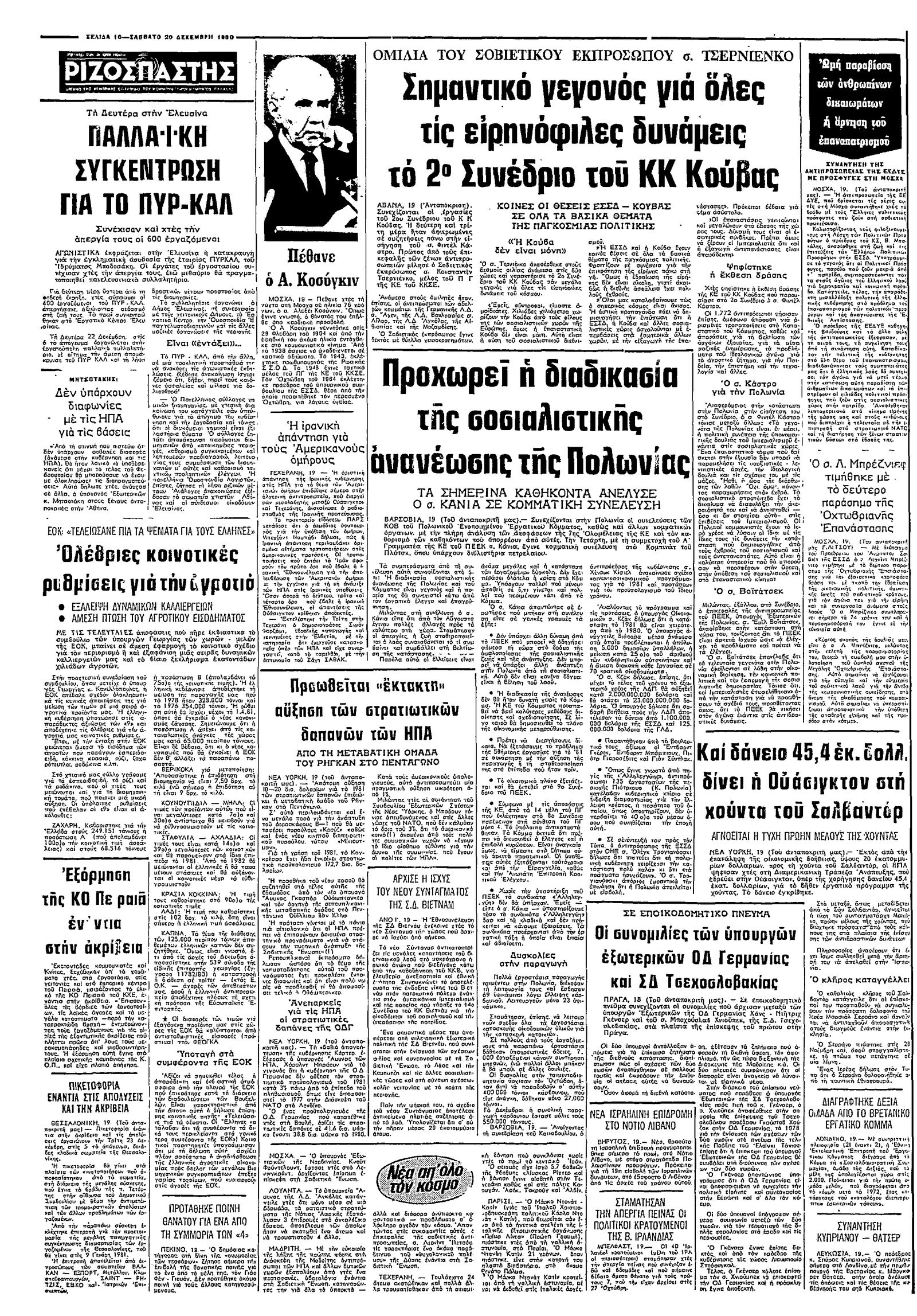 Ριζοσπάστης 20/12/1980