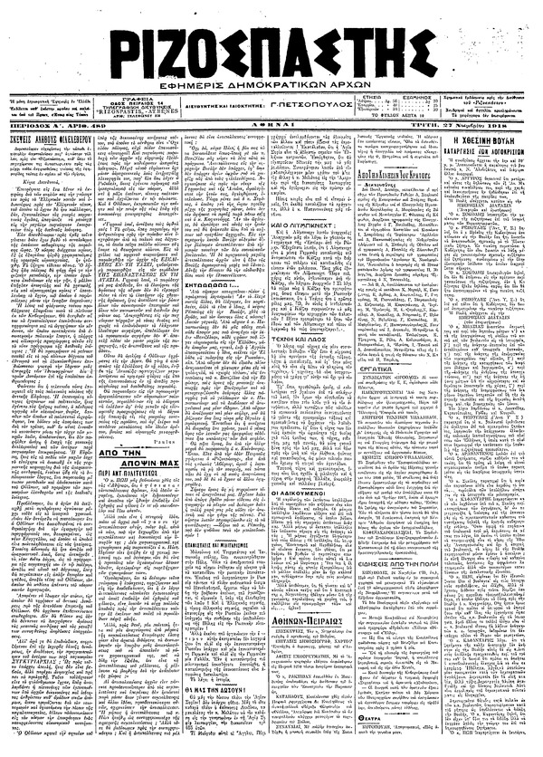 Ριζοσπάστης 27/11/1918