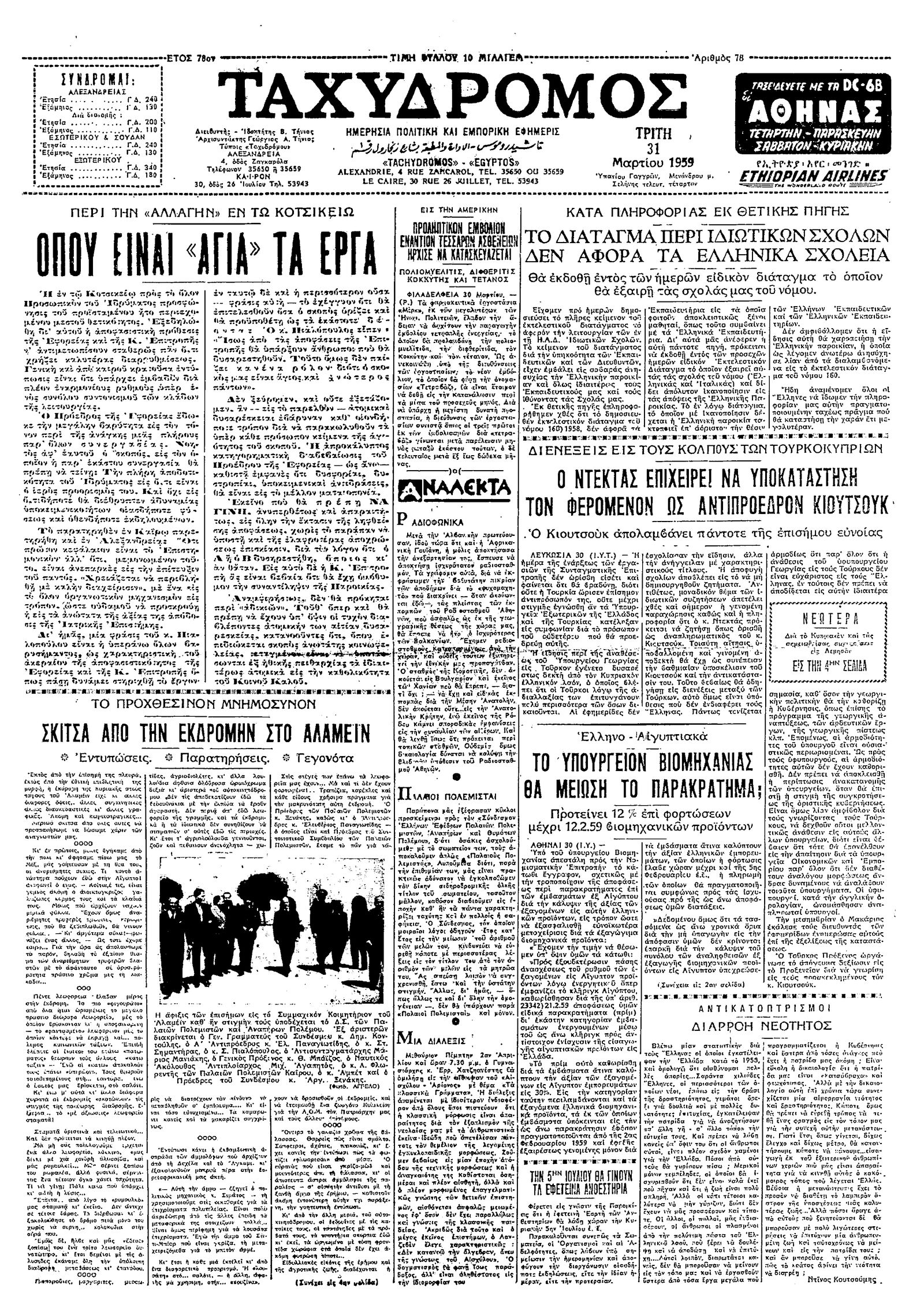 Ταχυδρόμος 31/03/1959