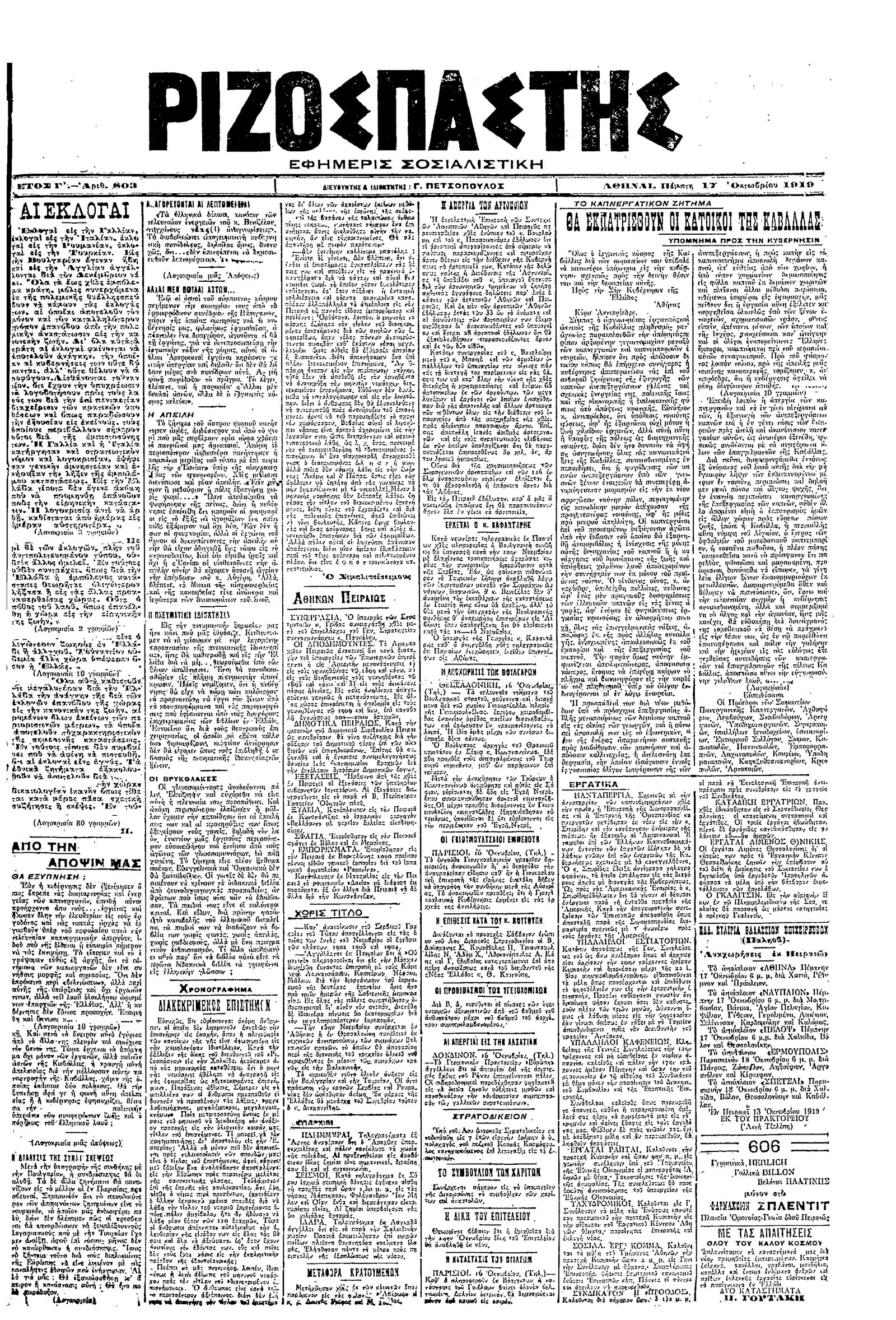 Ριζοσπάστης 17/10/1919