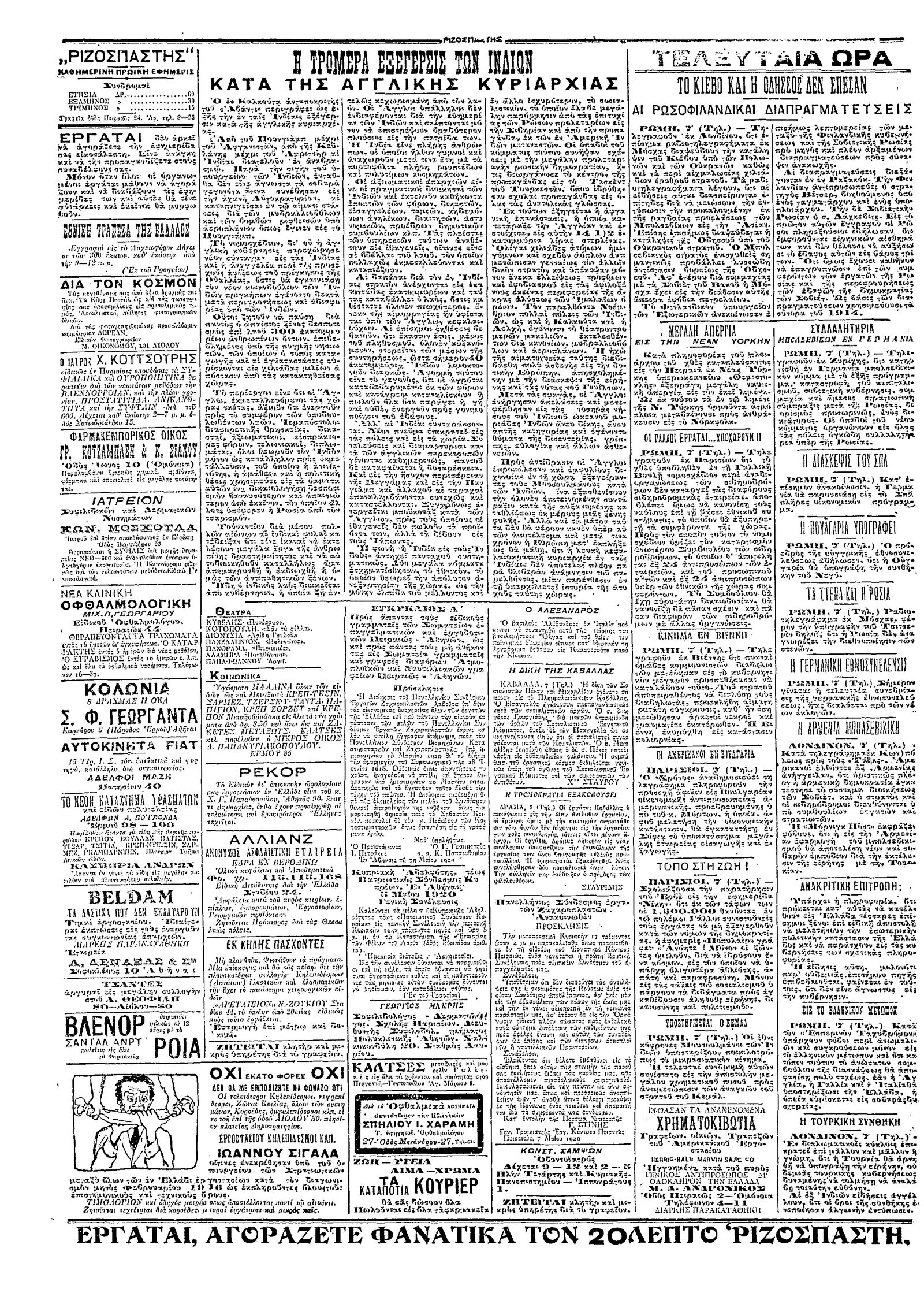 Ριζοσπάστης 08/05/1920